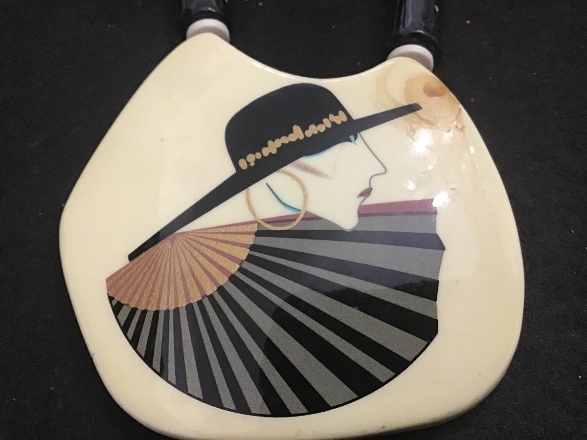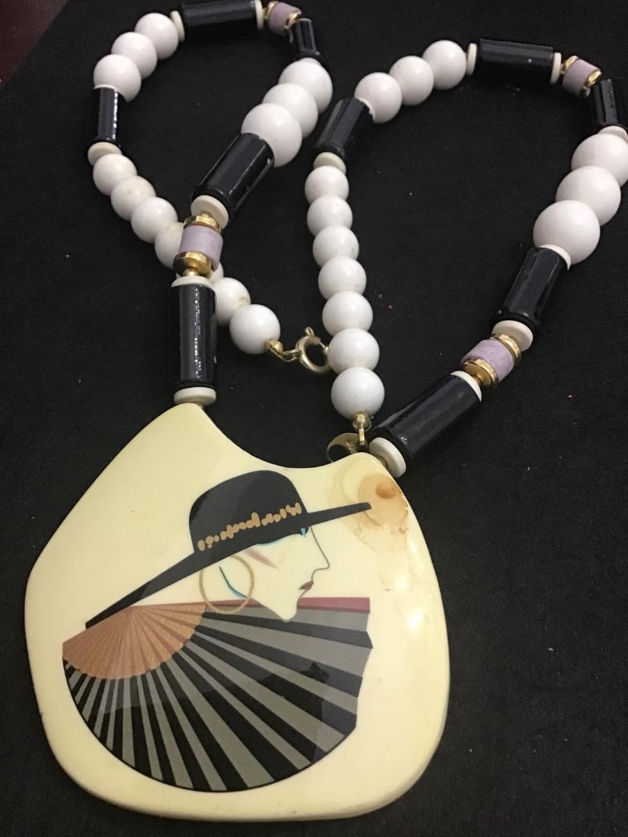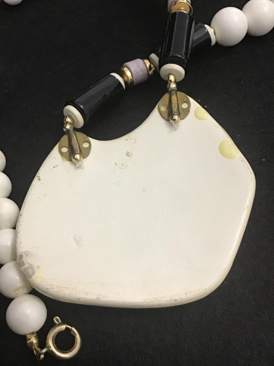 Vintage Art Deco Japan Necklace Lucite White Beads Ceramic Pendant