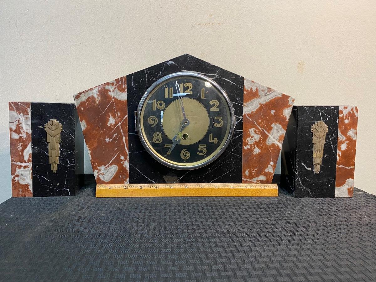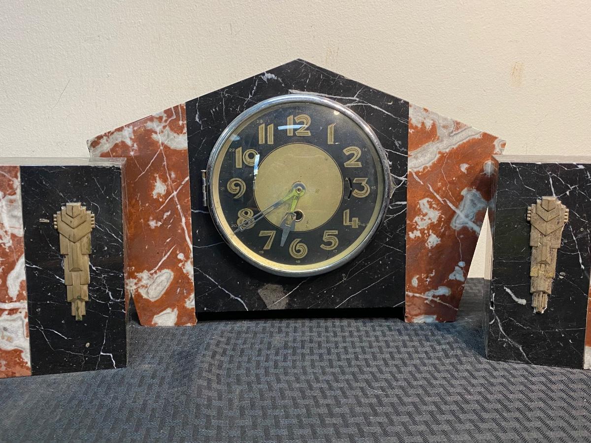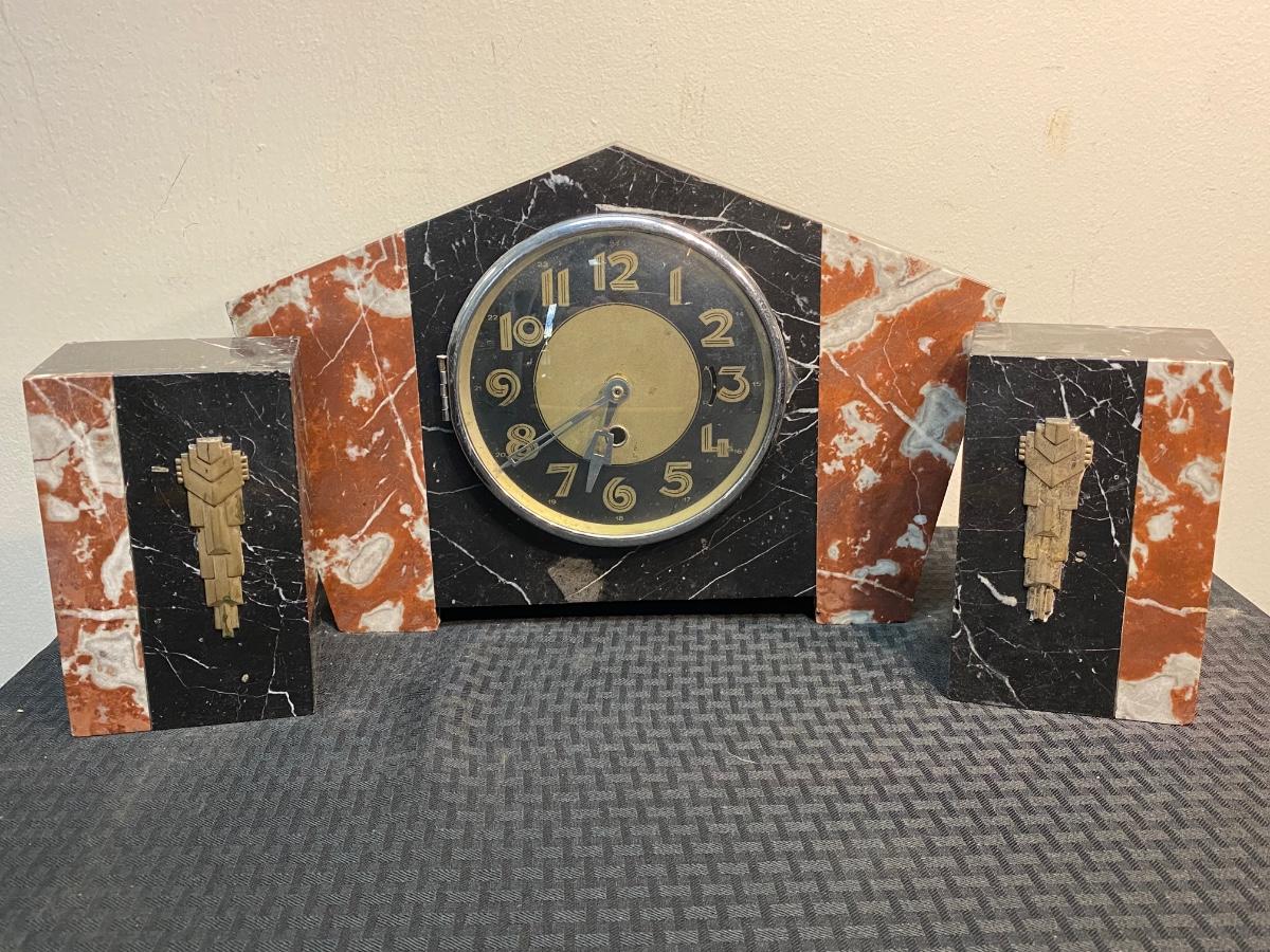 Vintage Art Deco Marble Mantel Clock Three Piece Set