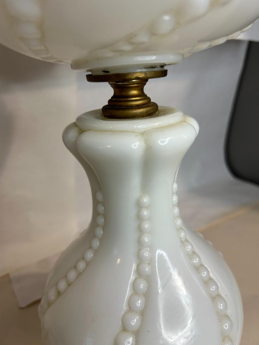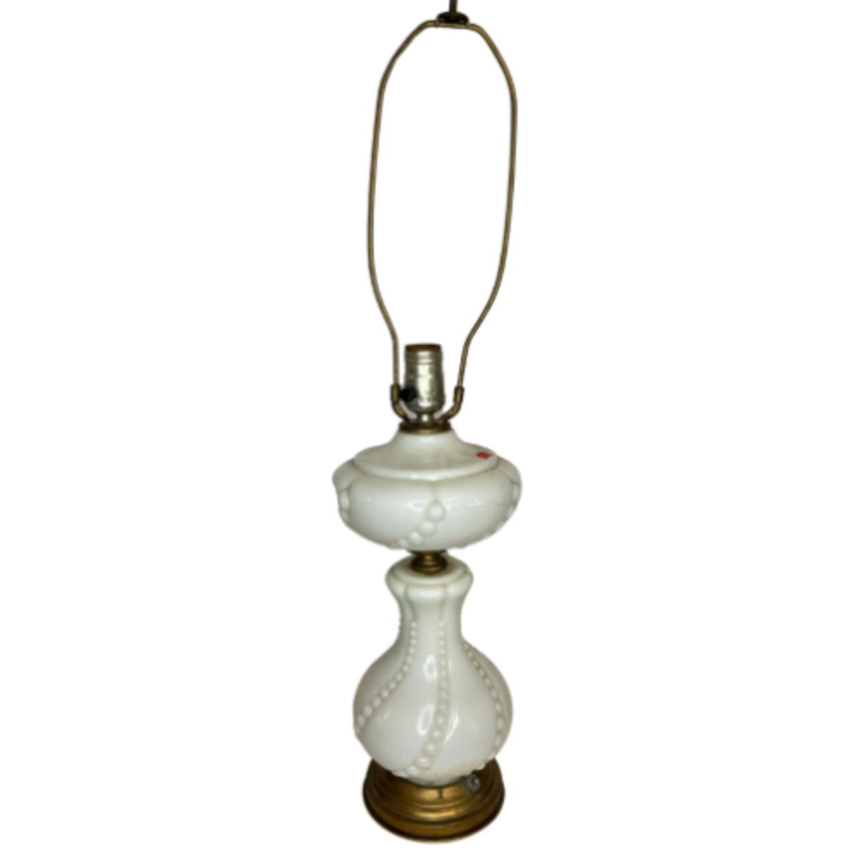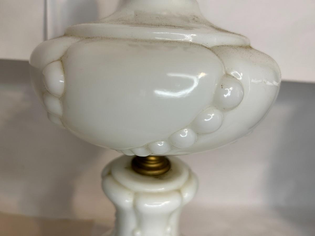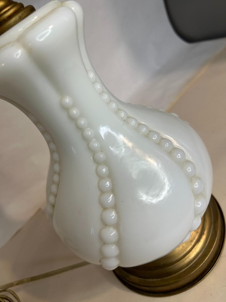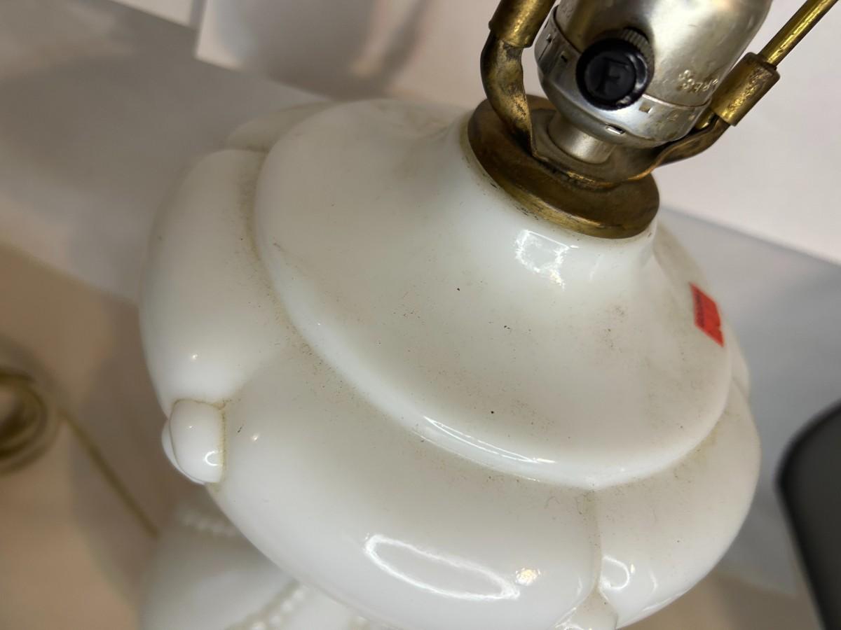 Vintage Art Deco Milk Diamond Cut Modern Revival Milk Glass Table Lamp