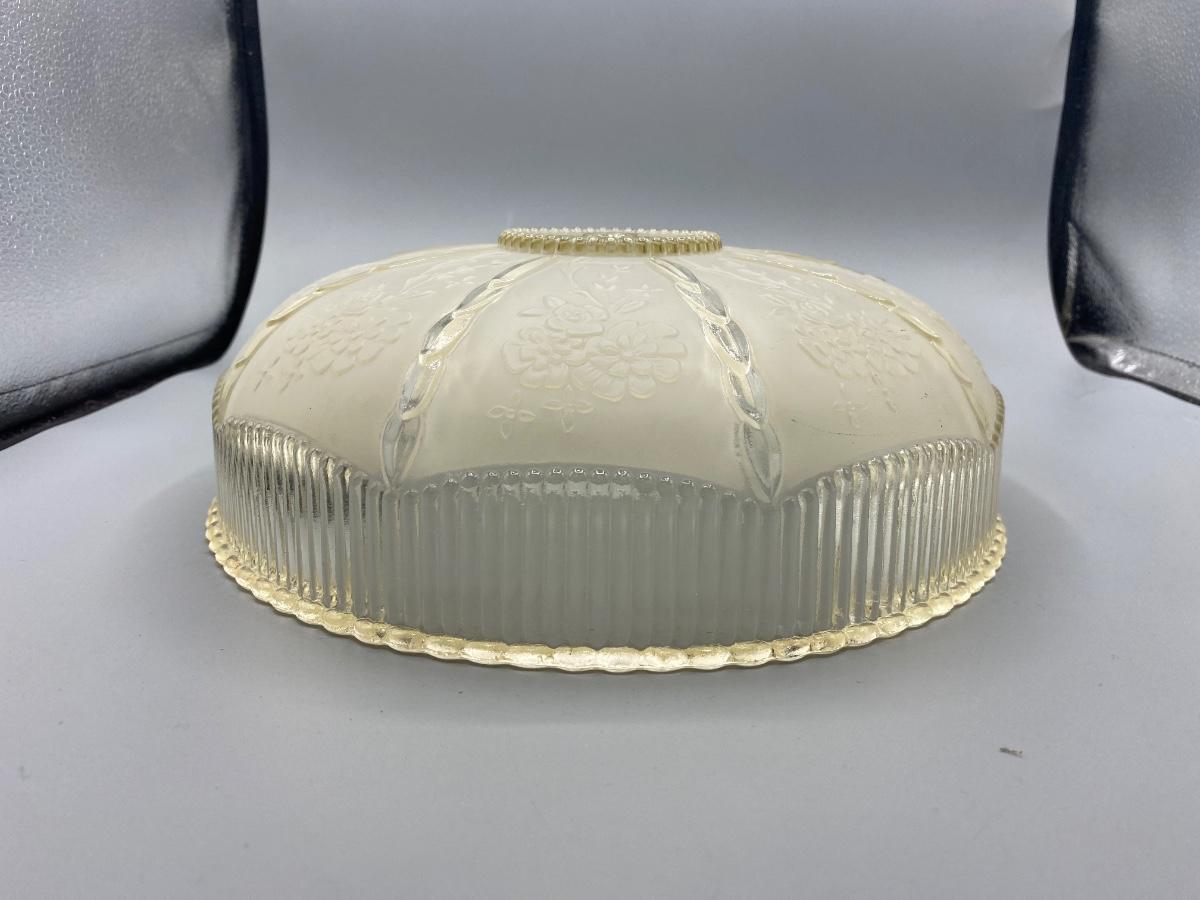Vintage Art Deco Nouveau Frosted Embossed Floral Glass Ceiling Lamp Shade