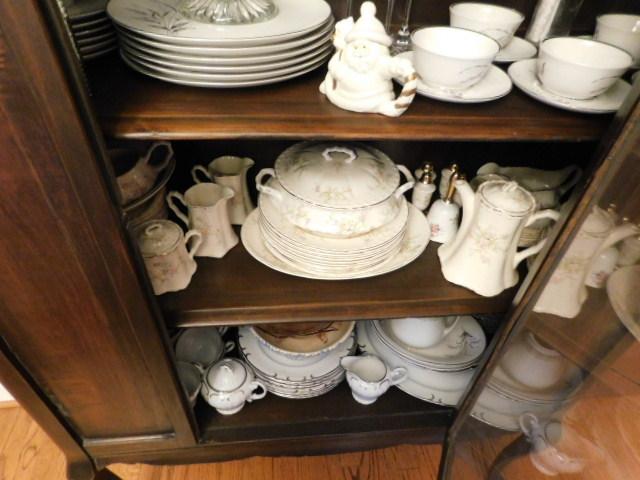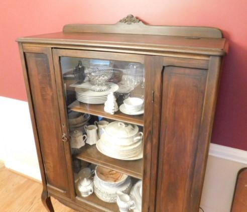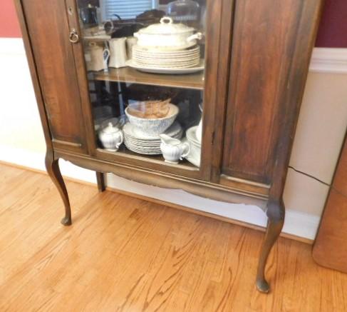 Art Deco Queen Anne Style Single Door China Cabinet 40"x16"x62" (No Contents) has some areas of delamination as shown. Gorgeous design.
