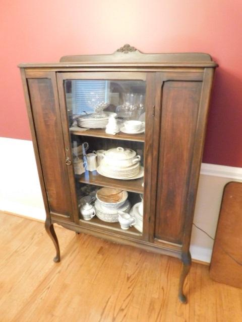 Vintage Art Deco Queen Anne Style Single Door China Cabinet 40"x16"x62" (No Contents)