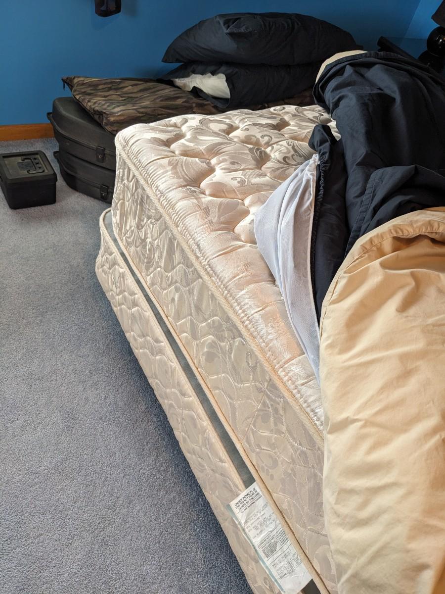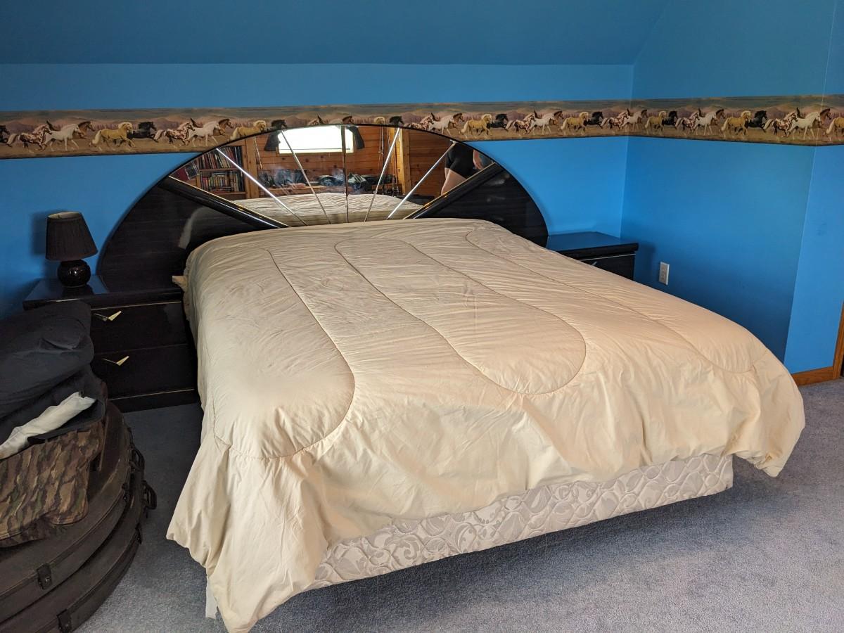 Vintage Art Deco Queen Bed, Mattress and Bedding