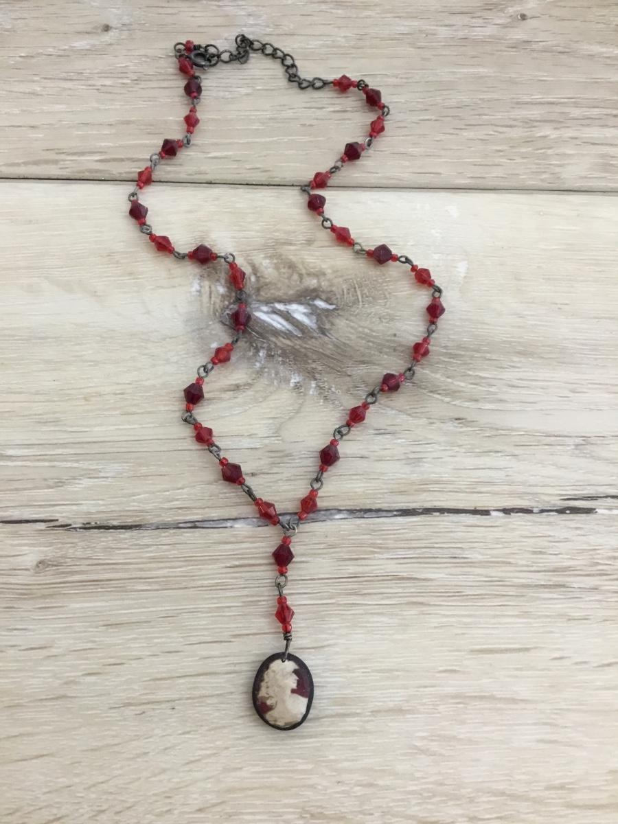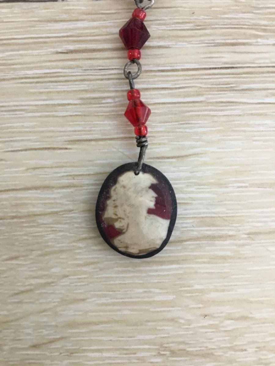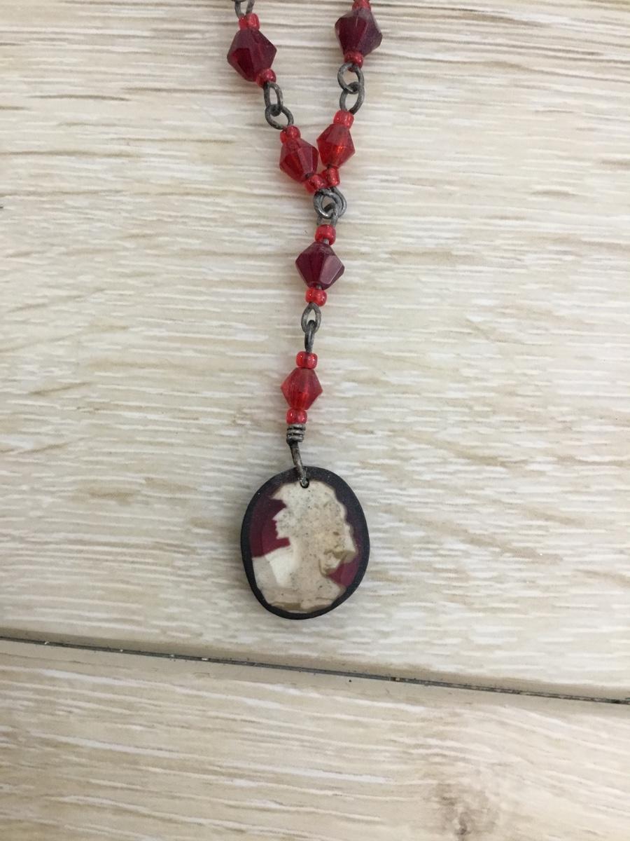 Vintage art deco red glass bead & cameo pendant