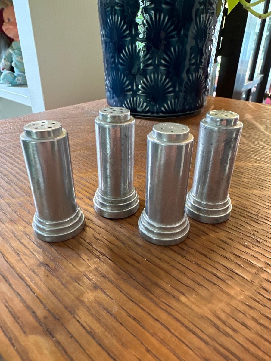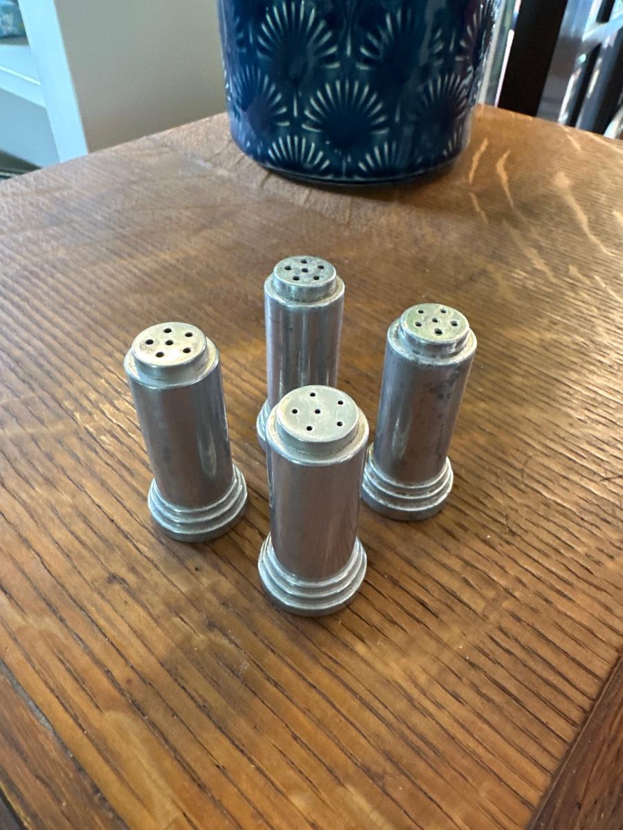 Vintage Art Deco Silver Aluminum Salt and Pepper Shaker Set- 2 Pairs