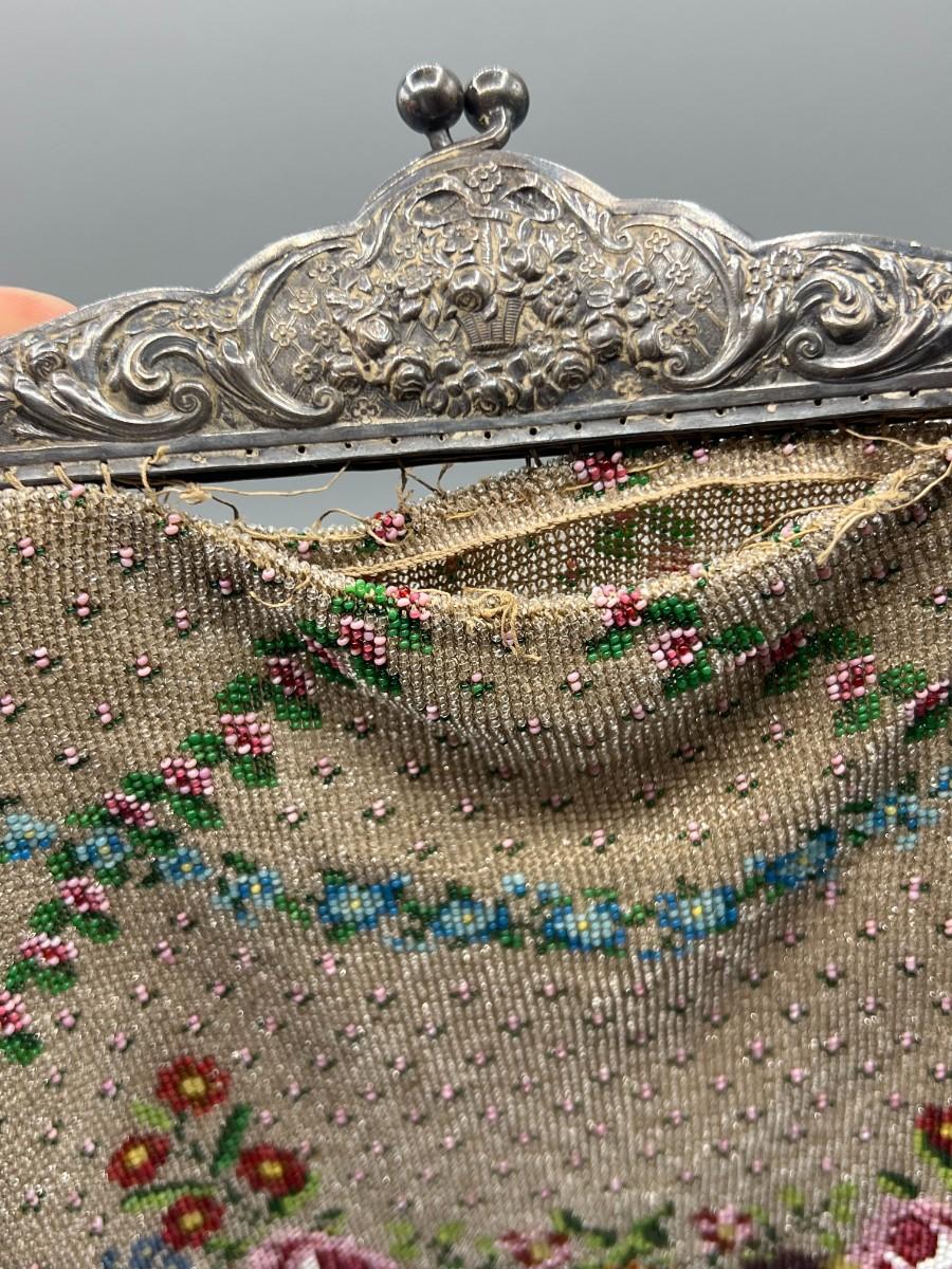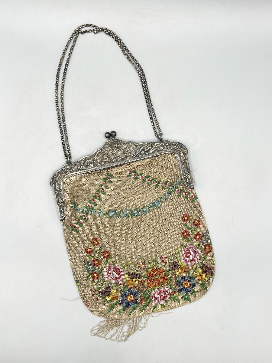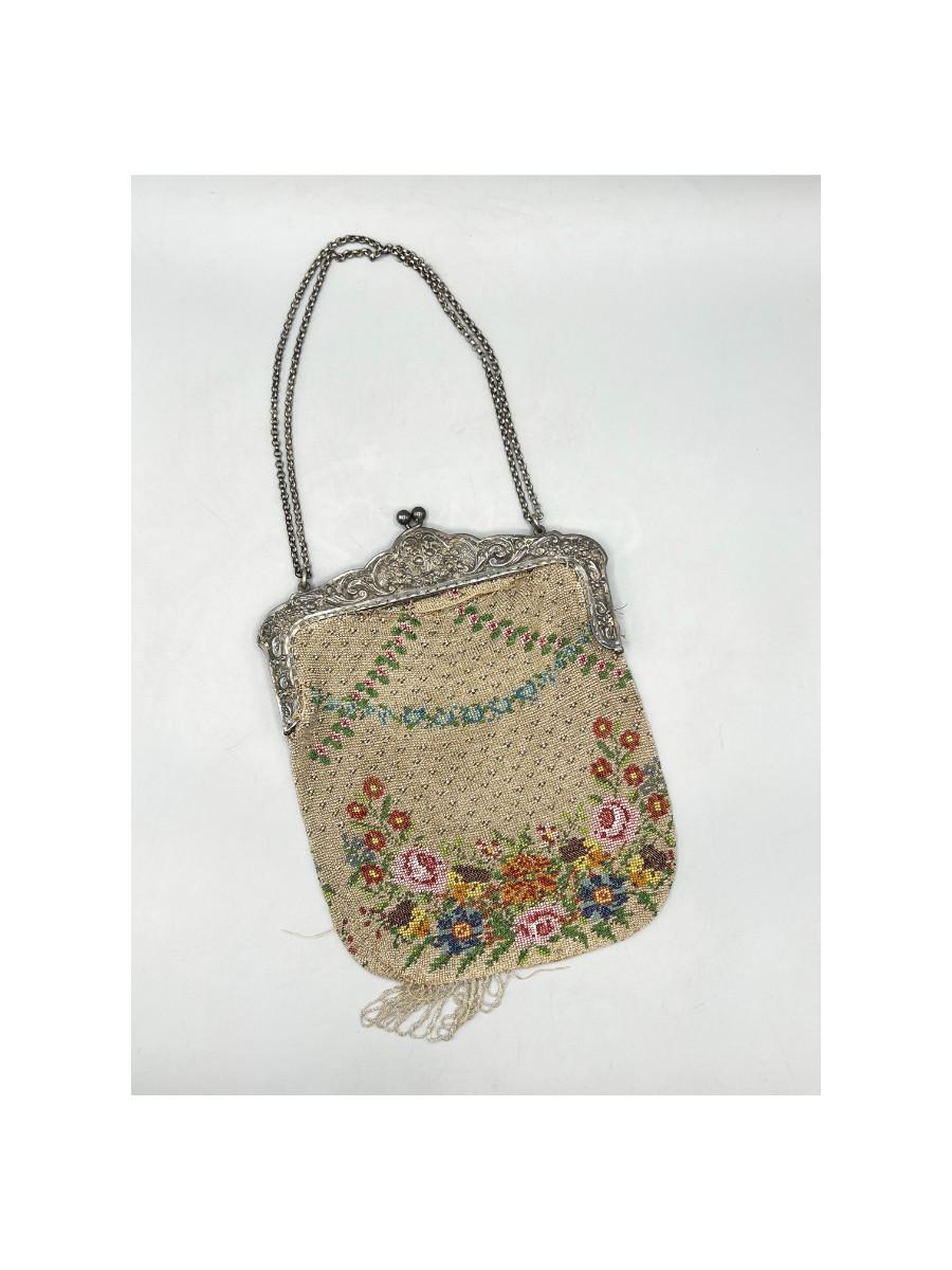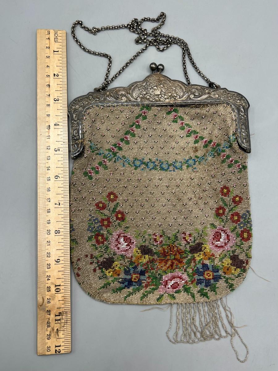 Vintage Art Deco Small Beaded Colorful Flower Fashion Handbag Purse
