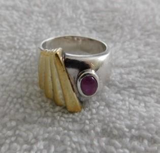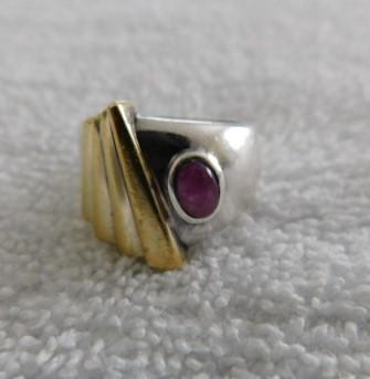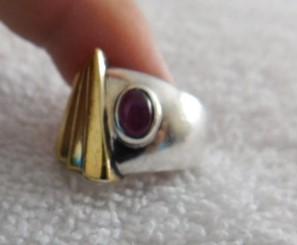 Vintage Art Deco Sterling Silver Ring with Oval Cut Cobochon Ruby (?) 12g Total...gem stone may or may not be as described. Bid accordingly.