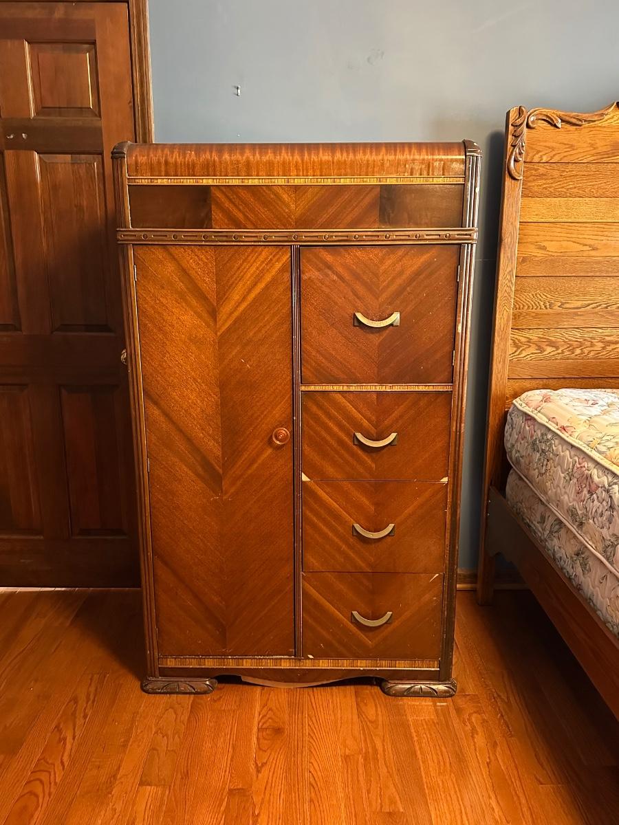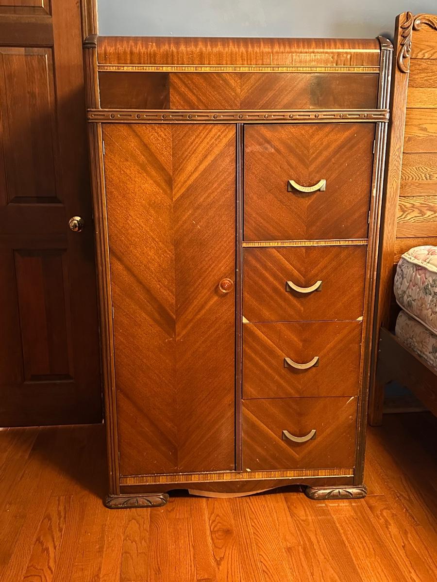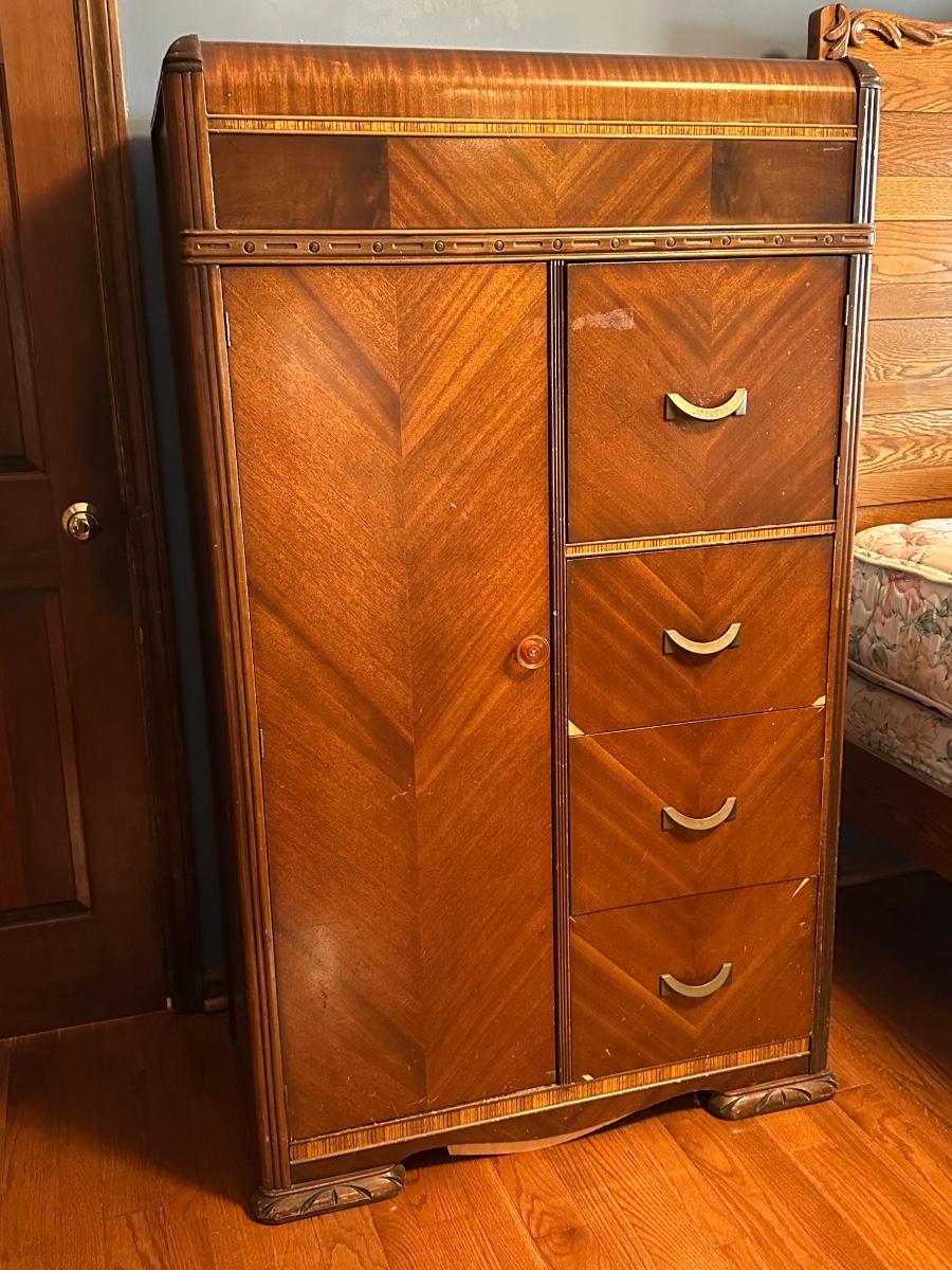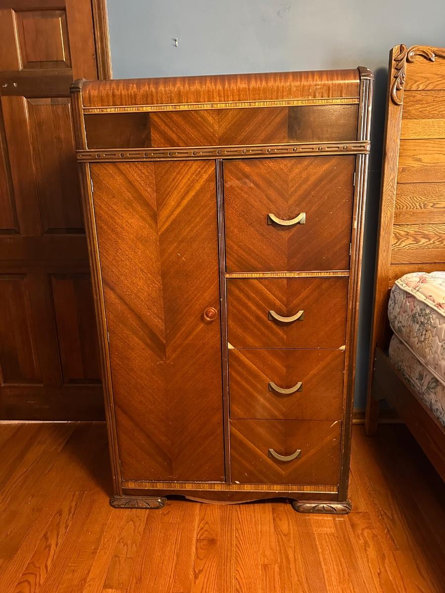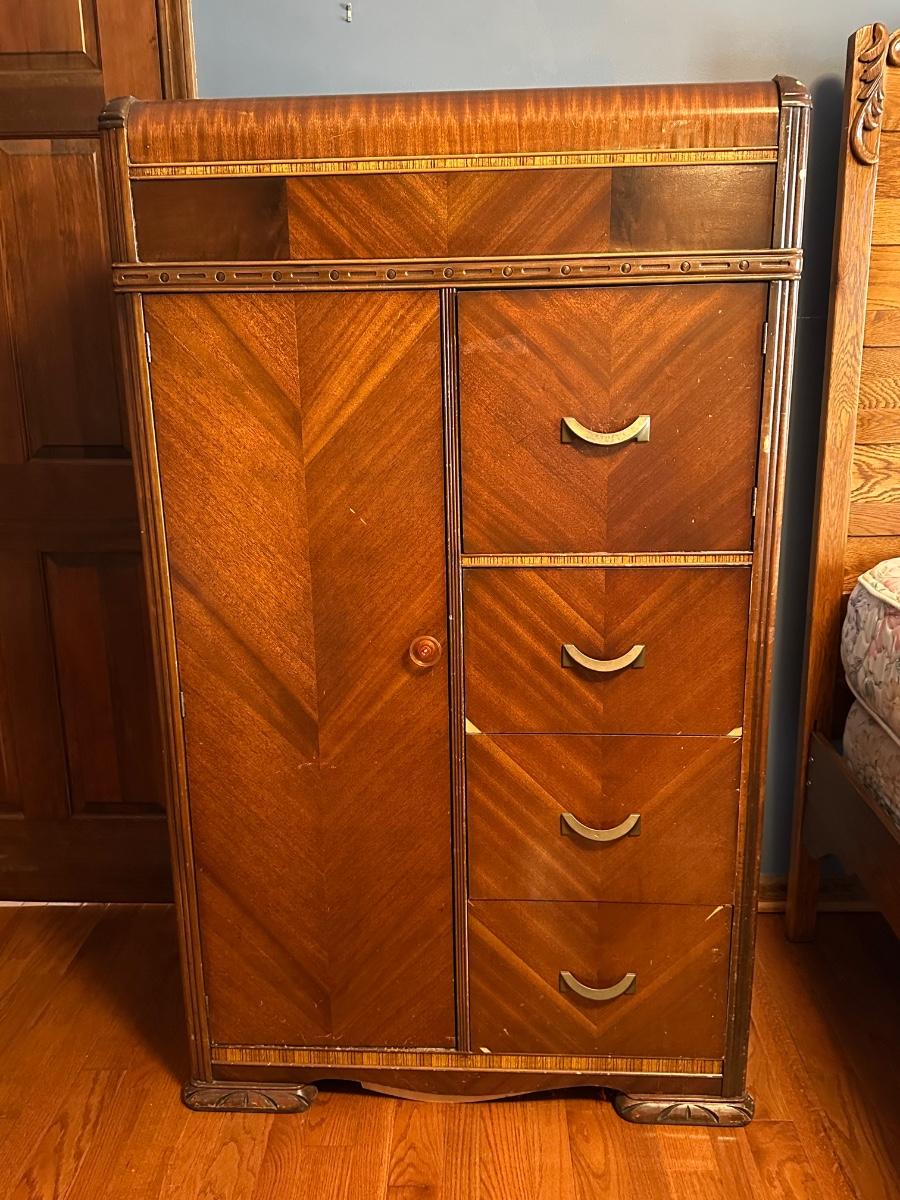 Vintage Art Deco Style Wood Wardrobe Dresser