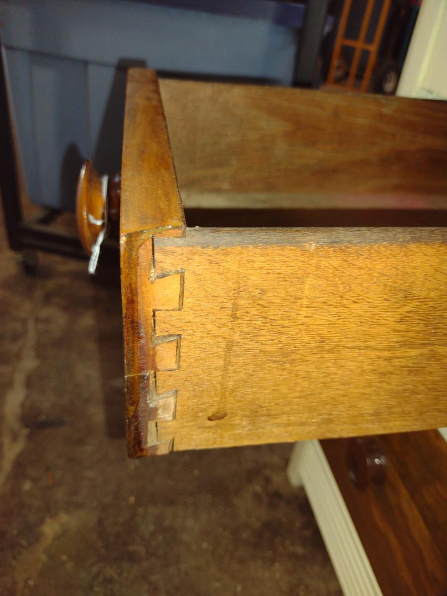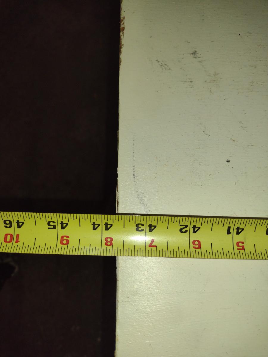 Vintage Art Deco Two Tone Vanity Table with Mirror. Item measures approx 43 3/4" wide x 19" deep x 23" tall to top of table, 38 1/4" to top of mirror. Please see all pictures there appears to be a separation of the wood on one side.