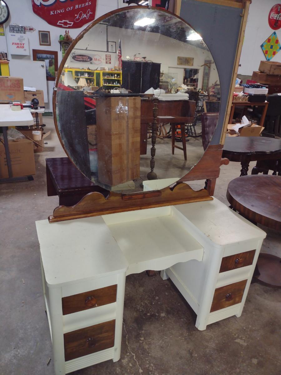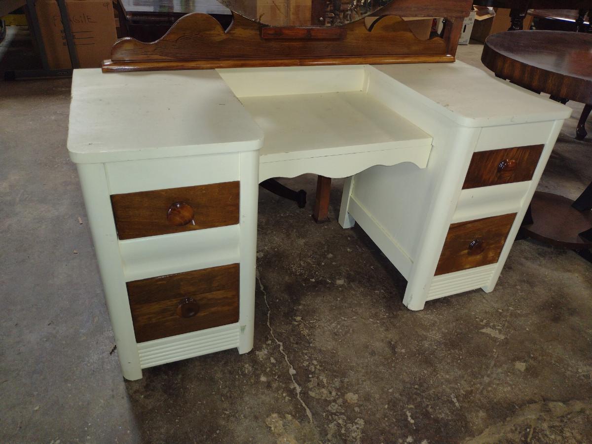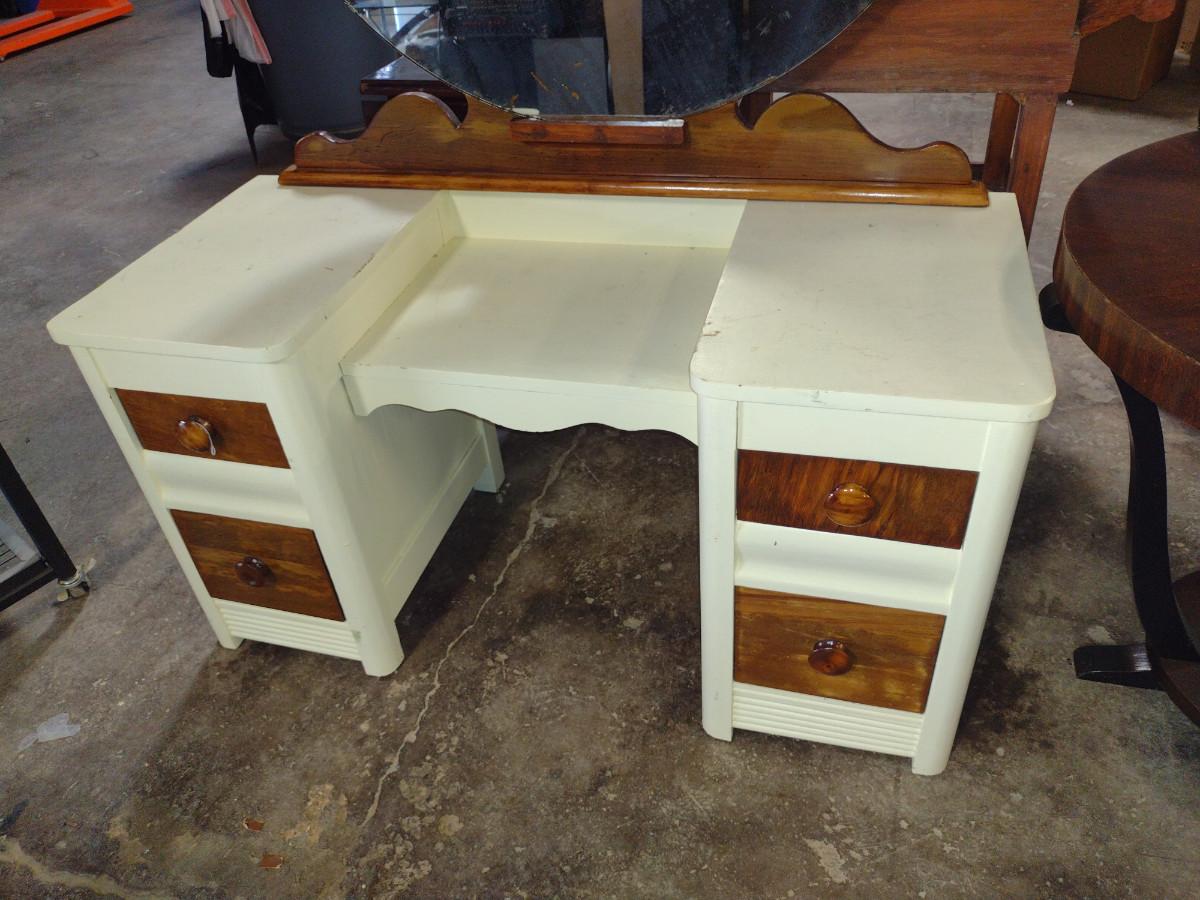 Vintage Art Deco Two Tone Vanity Table with Mirror