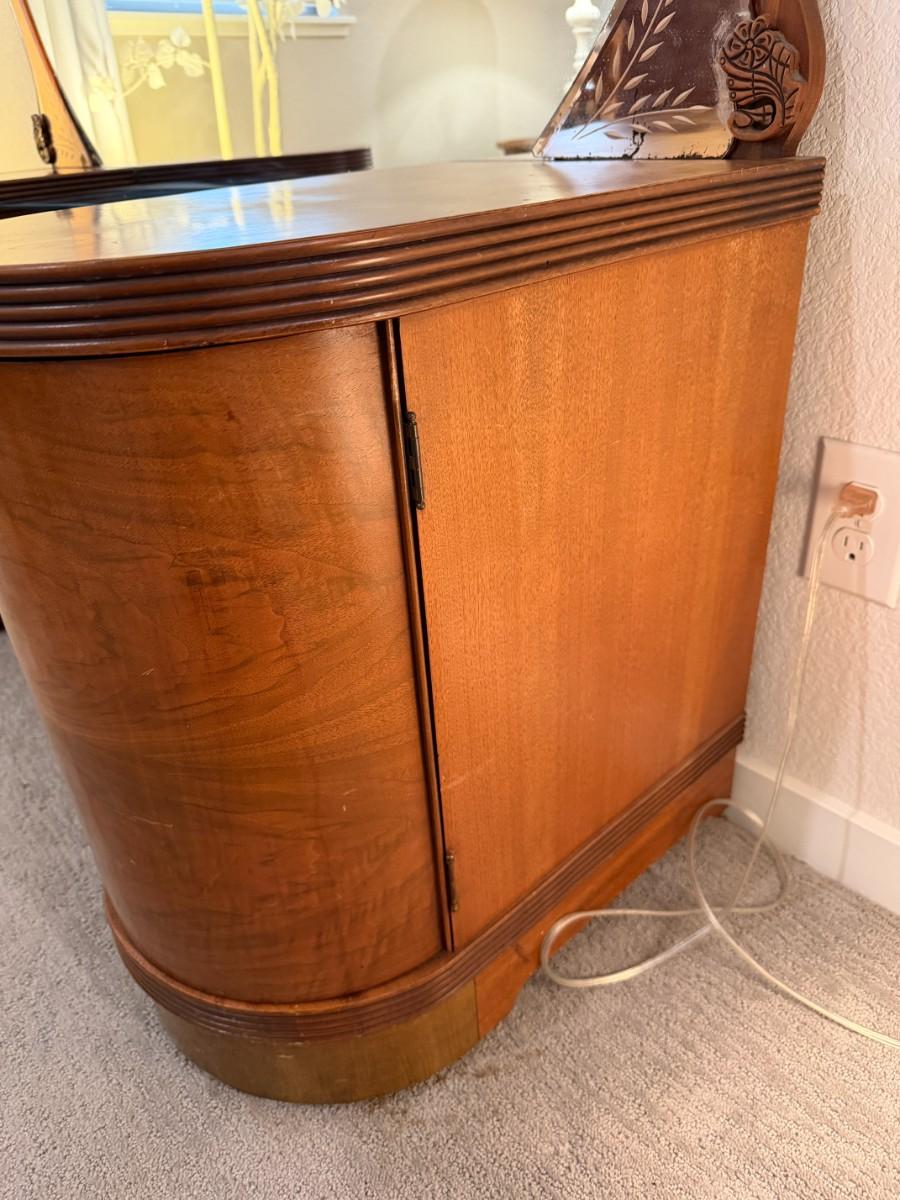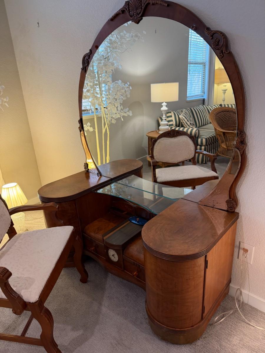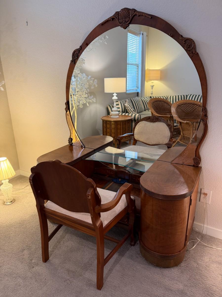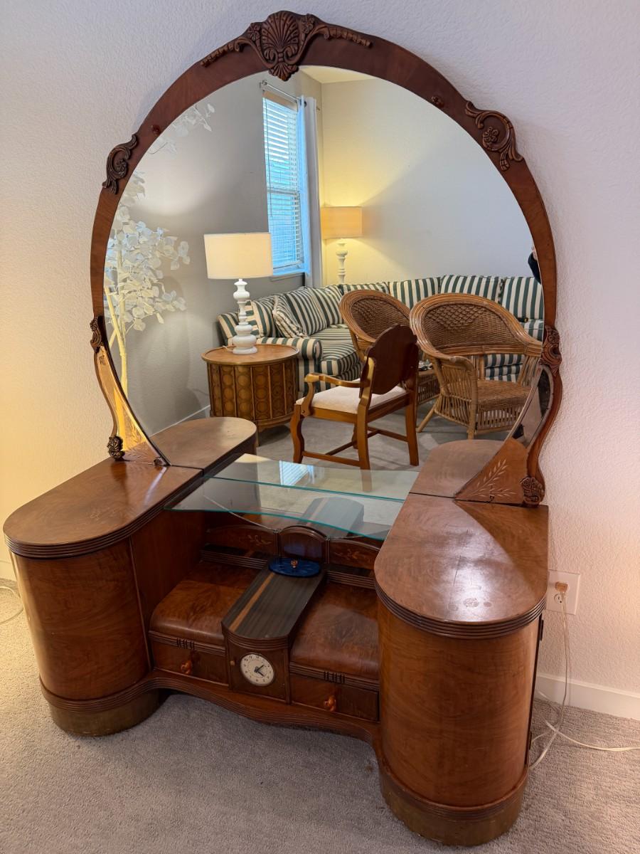 Vintage Art Deco Waterfall Vanity w/ Mirror and matching stool
