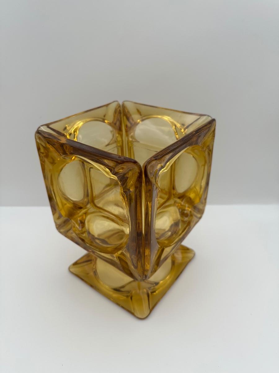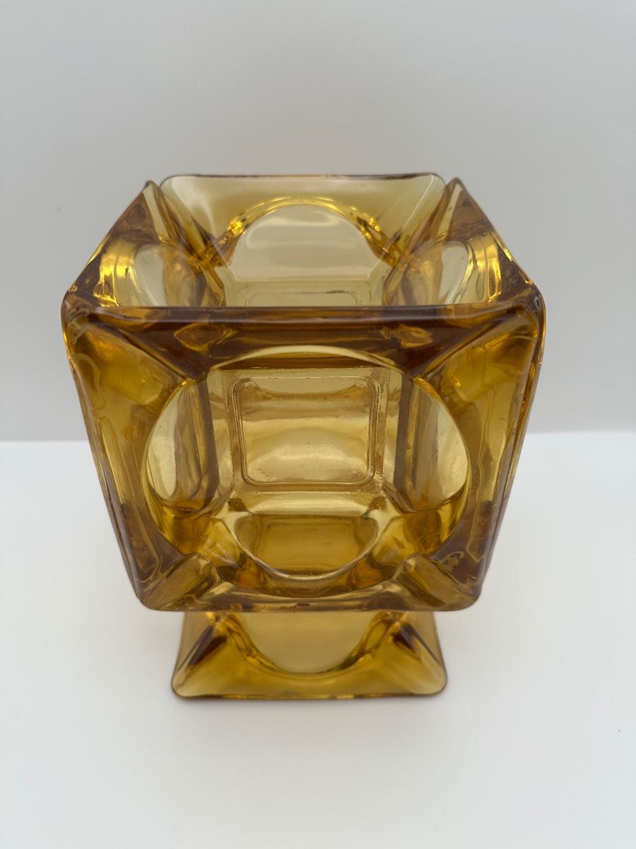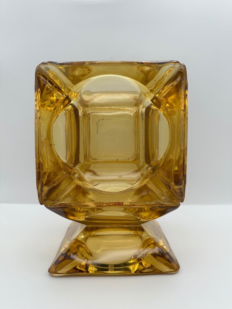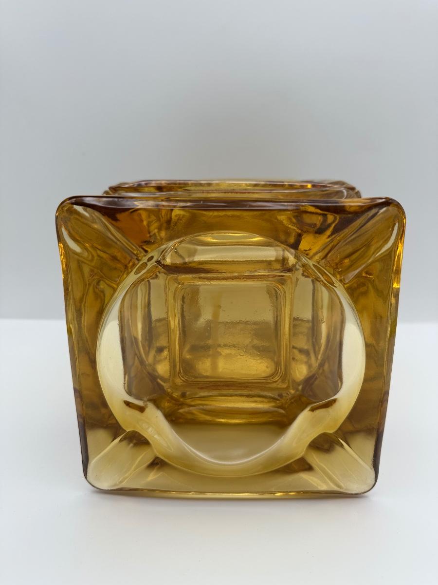 Vintage Art Glass Ashtray Amber Vase Candle Holder