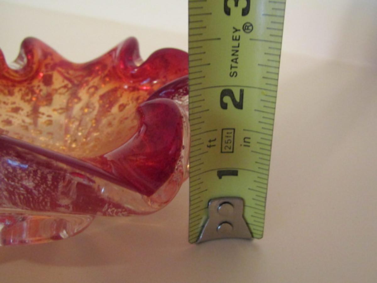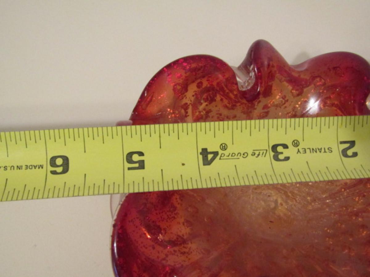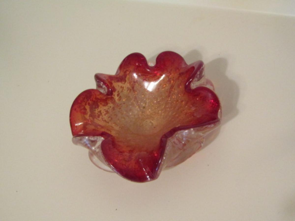 Vintage Art Glass Ashtray/Trinket Dish Aventurine Red Gold Ruffled Edge
