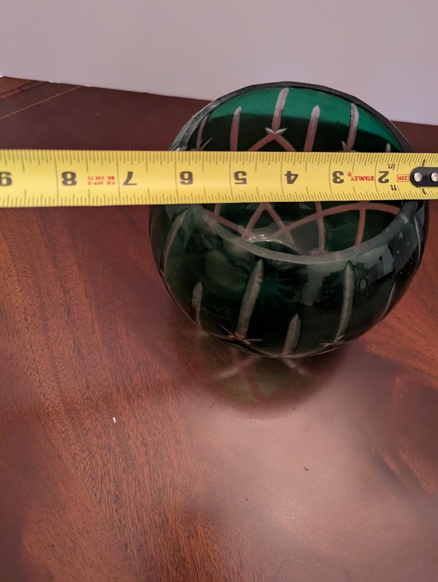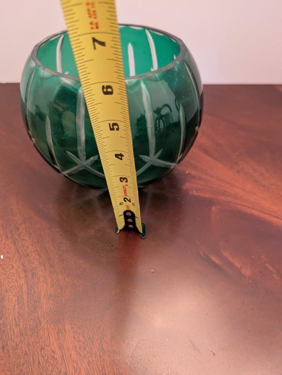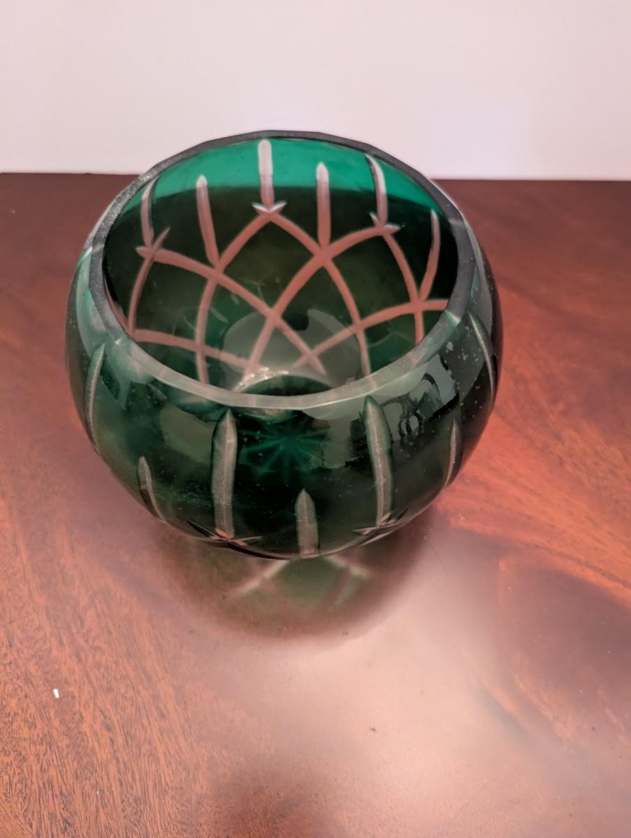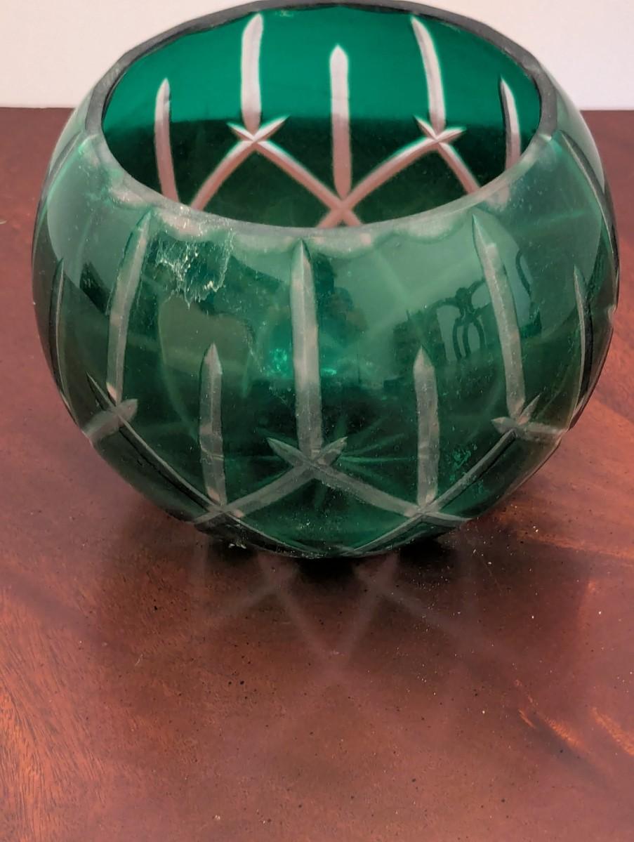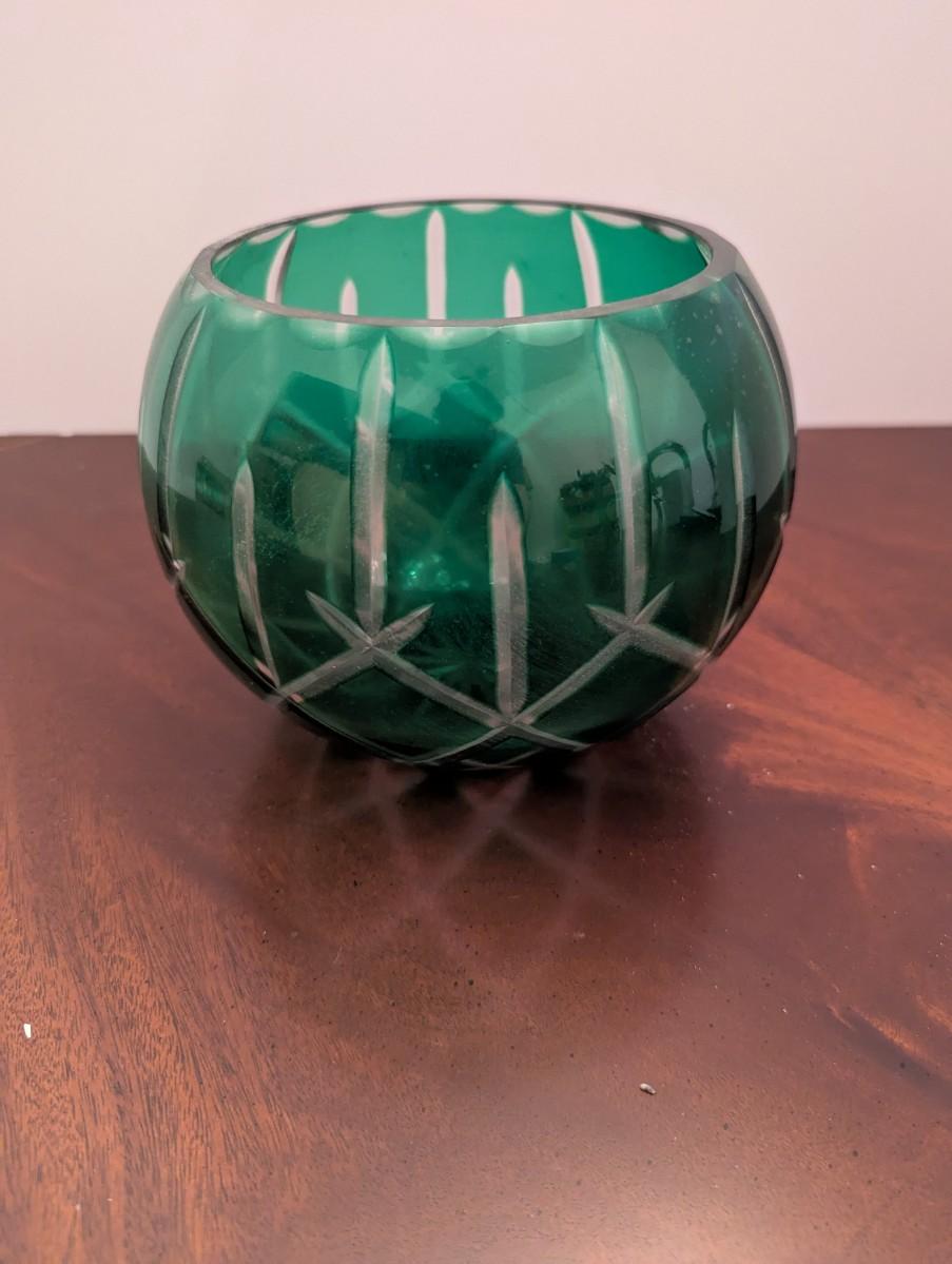 Vintage Art Glass Crystal Emerald Green Cut To Clear Rose Bowl