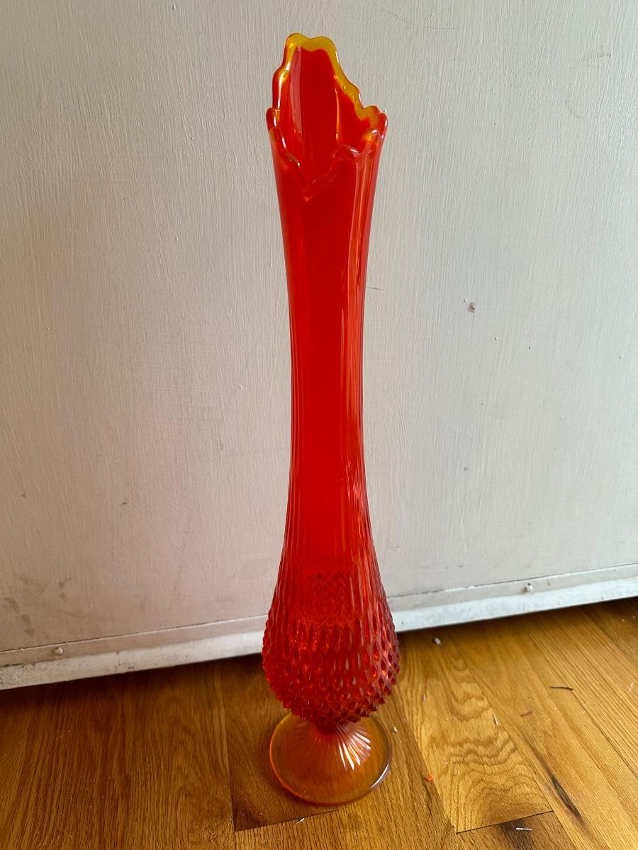 VINTAGE ART GLASS VASE, 21 1/2" TALL, AS PICTURED