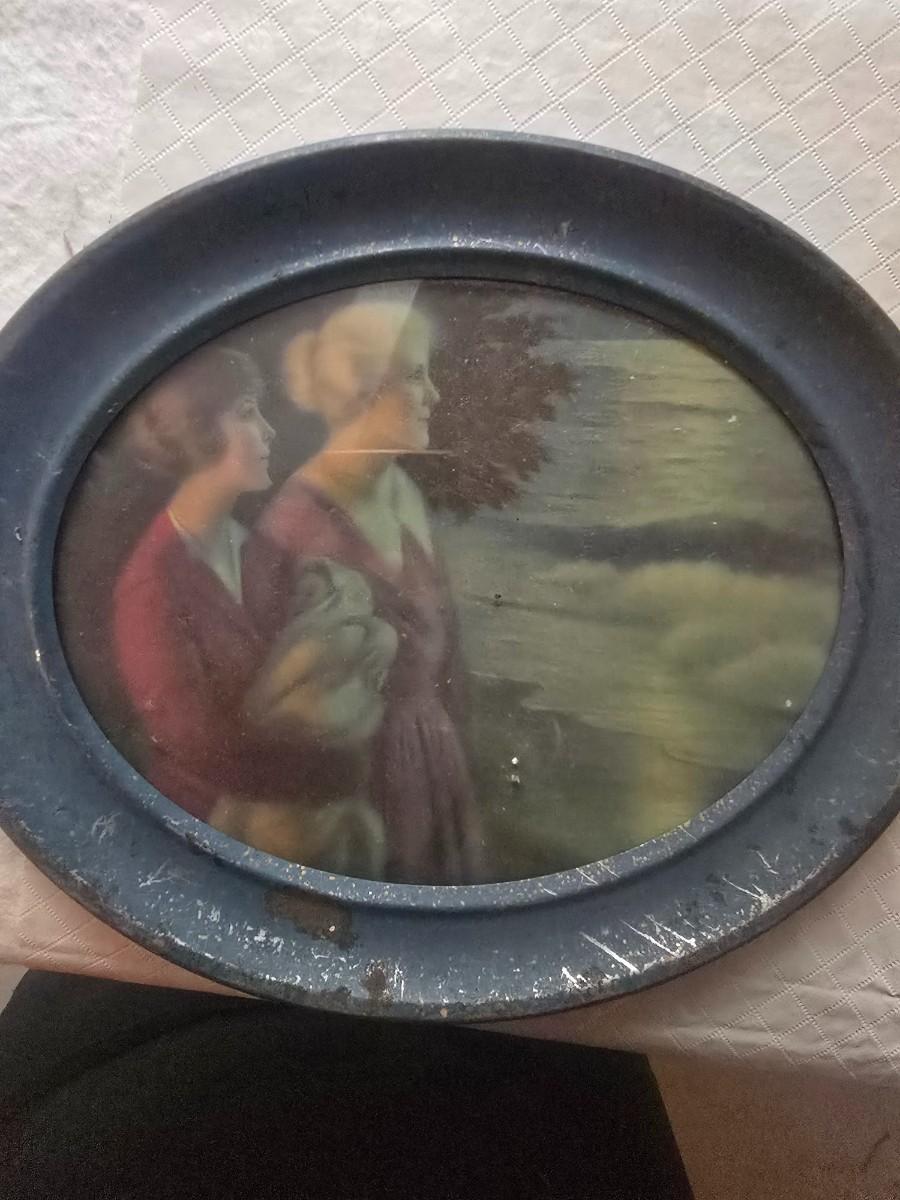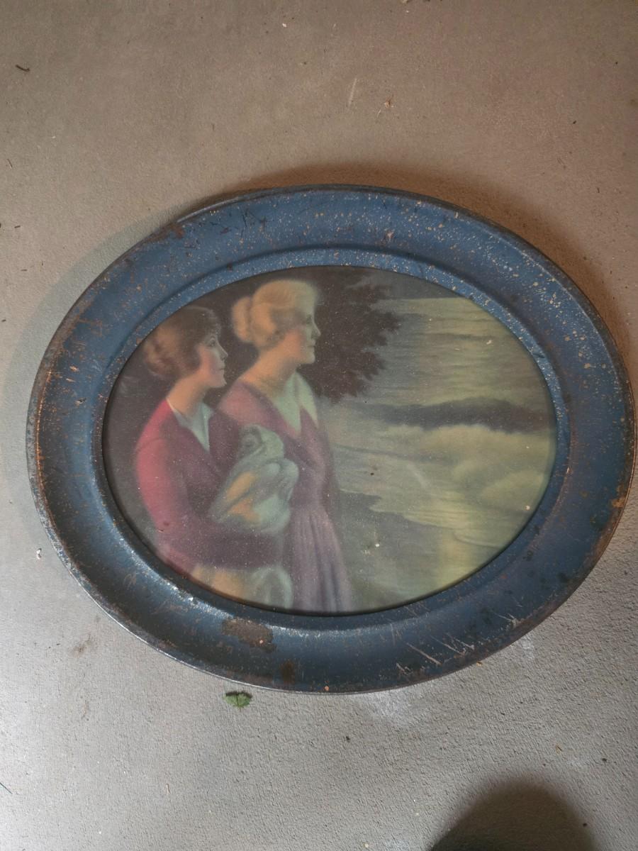 VINTAGE ART IN OVAL FRAMES AND A VARIETY OF PICTURE FRAMES