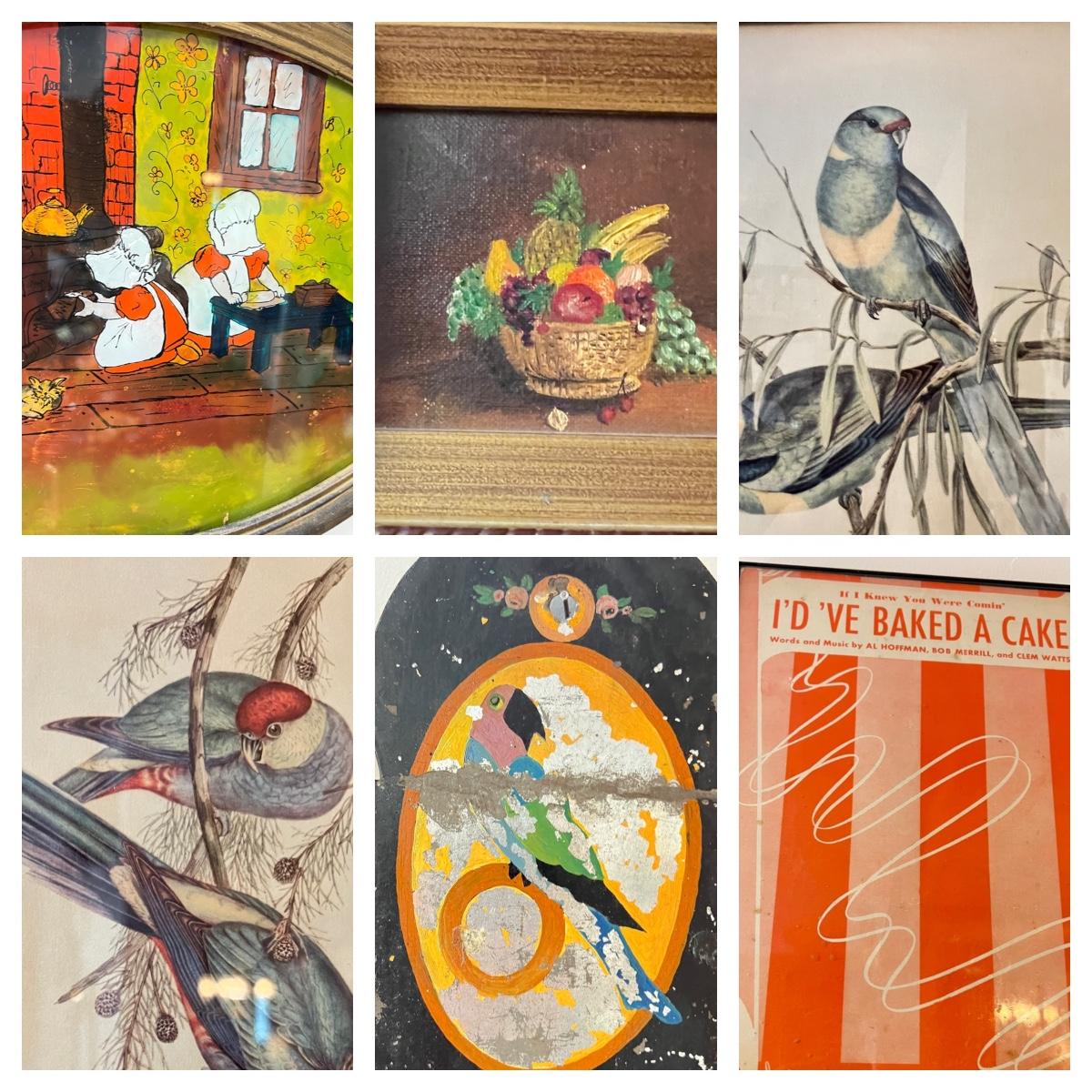 Antique Vintage Art Lot - Metal Hanging Candle Holder, Sheet Music, Oil Painting etc.
