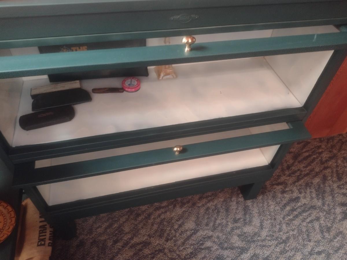 Vintage Art Metal Two Compartment Barrister Cabinet. This is upstairs. Please bring assistance to carry to the lower level.