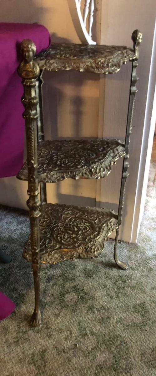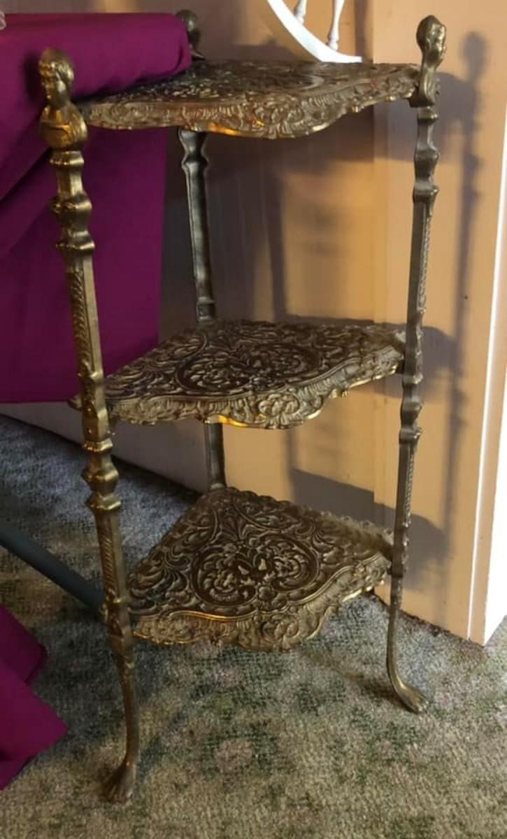 Vintage Art Nouveau 1908 Brass Three Tier Shelf