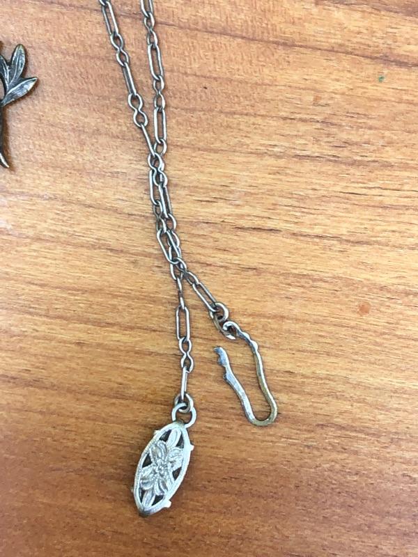 Beautiful Carved Floral Sodalite Set in Art Nouveau Setting and Link Silver Necklace