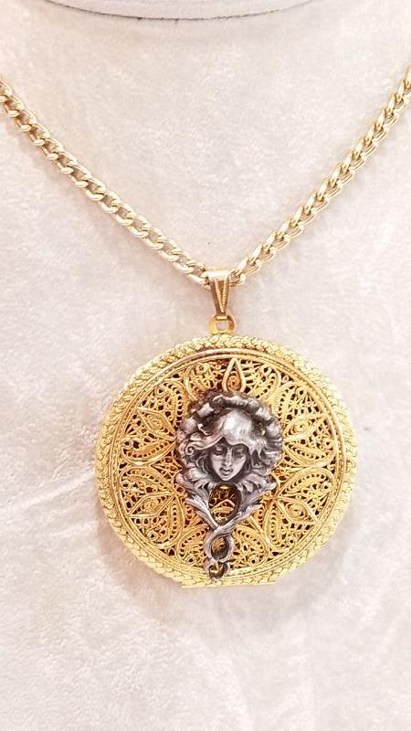 Gorgeous locket, I do not beleive the chain is orig. Also nit sure ifnthe inside is supposed to have rings to support a photo but it sure is a beauty. Add $6.50 shipping.