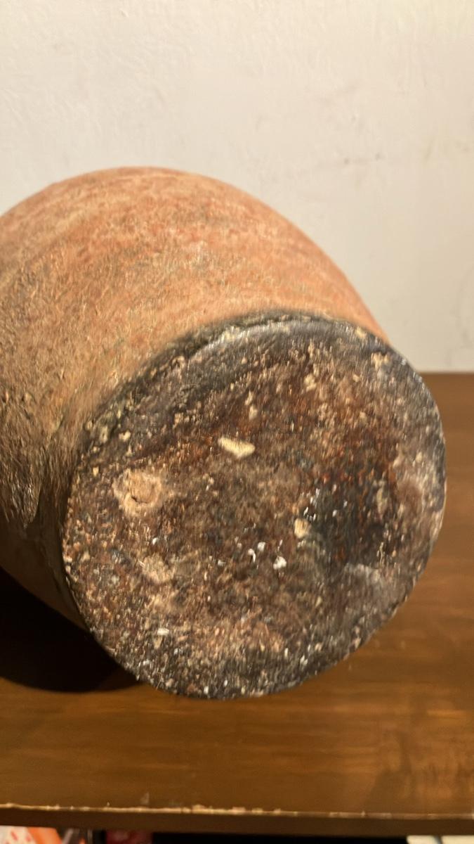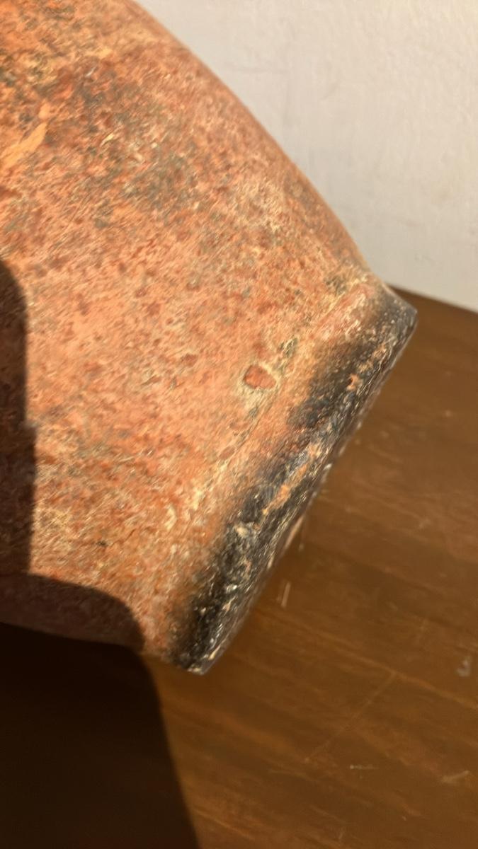 This form is characteristic of traditional Mediterranean or Middle Eastern utilitarian ewers used for pouring water, oil, or wine, drawing from ancient prototypes (such as Roman/Byzantine pitchers or Near Eastern spouted vessels) but produced in the 19th to early 20th century across regions like France (Provence), Spain, Italy, North Africa, or the Ottoman territories. Such vessels were handmade on the wheel, often unglazed to allow evaporative cooling for water storage, and remain popular in folk pottery traditions. The excellent condition and genuine patina enhance its rustic decorative appeal.