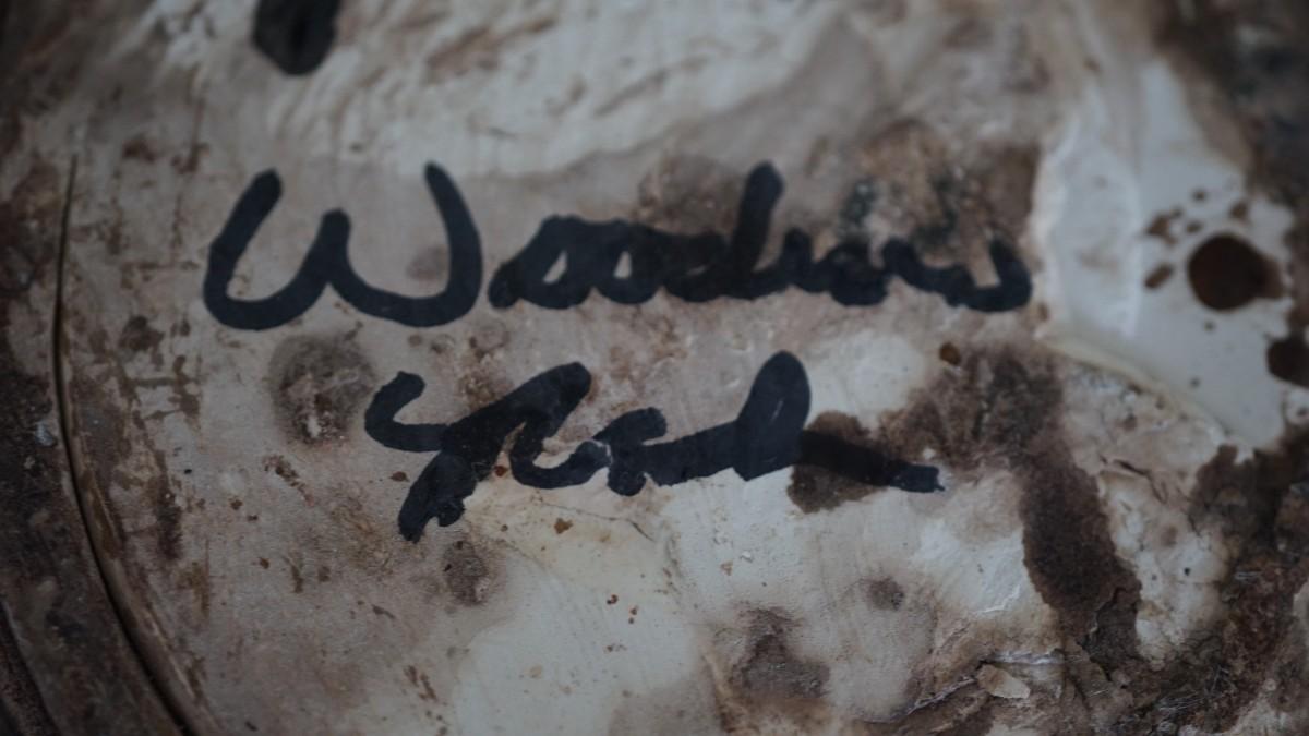 Signed on base Woodrow and I can not make out or find in research one of similiar last name.. R...