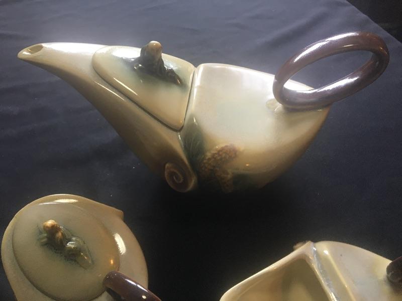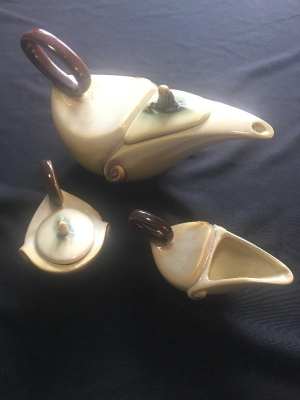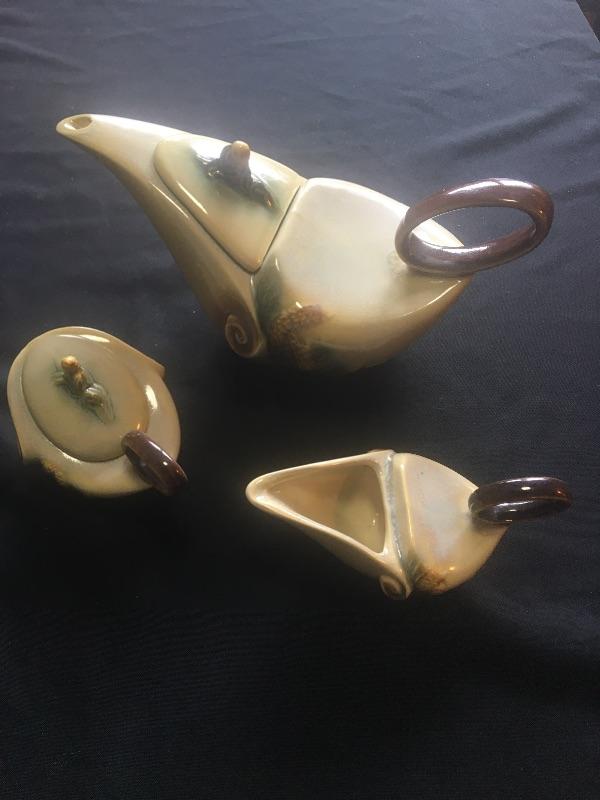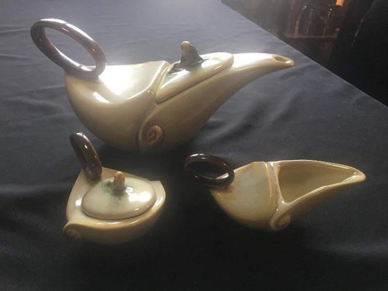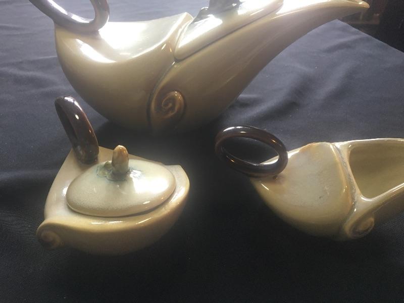 Vintage Art Pottery Hull Style Tea Set with Sugar and Creamer. LOT 1