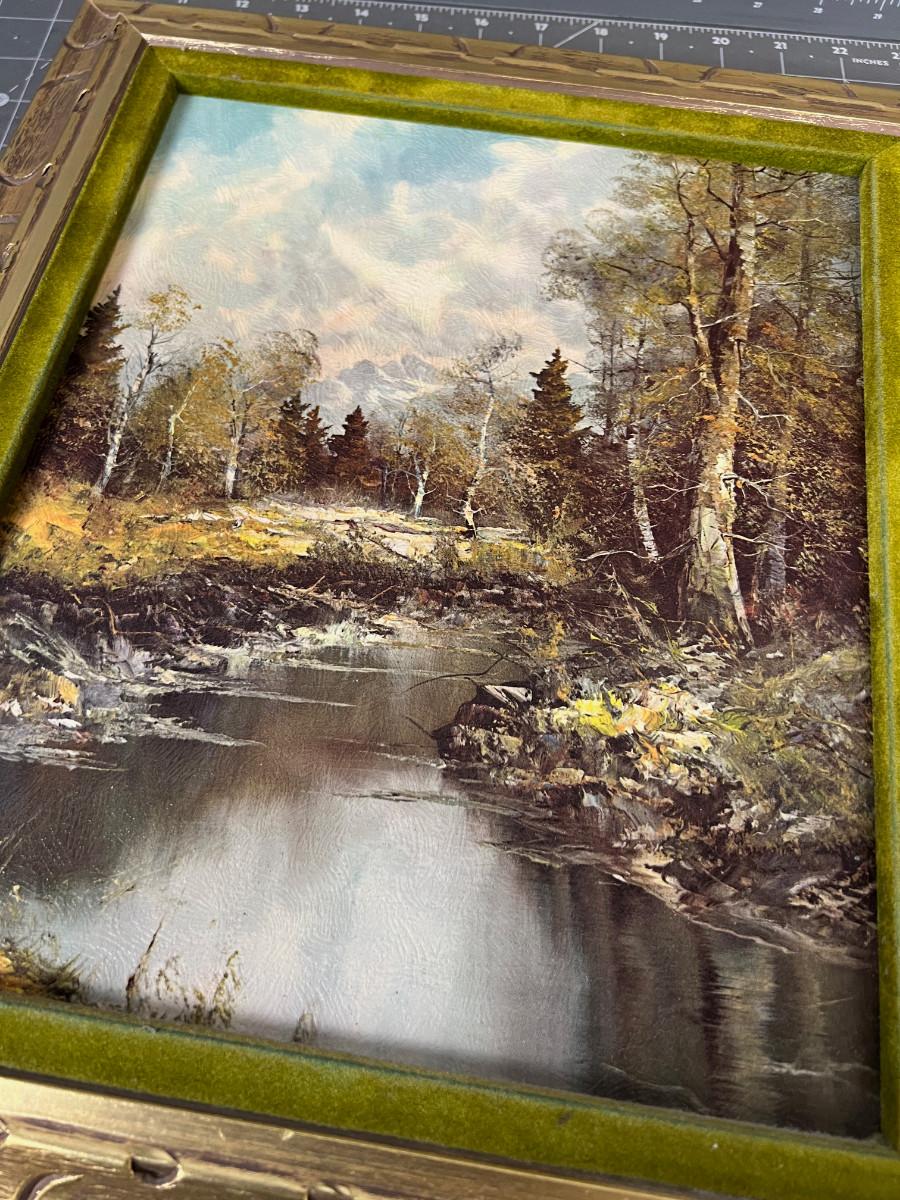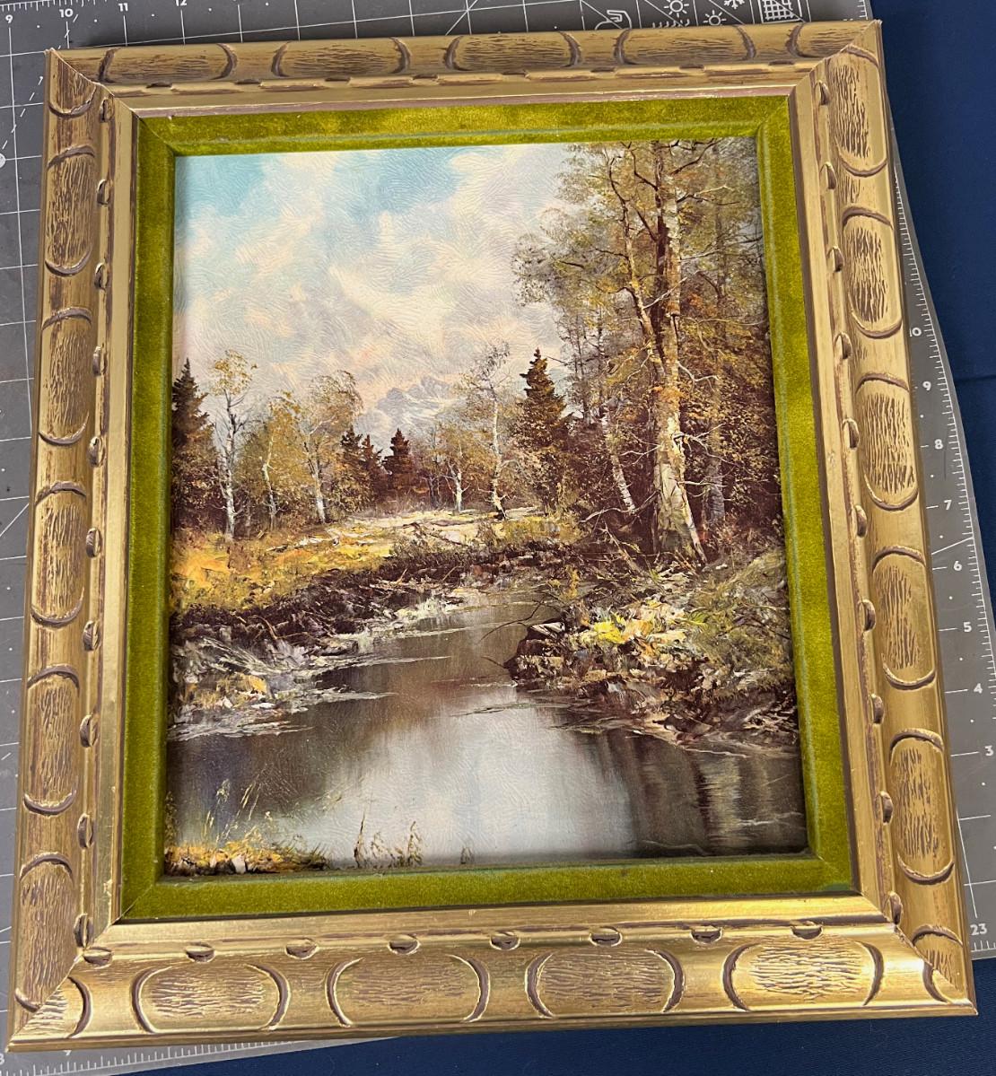 Vintage Art Print Landscape Scene, Framed in Gold Tones