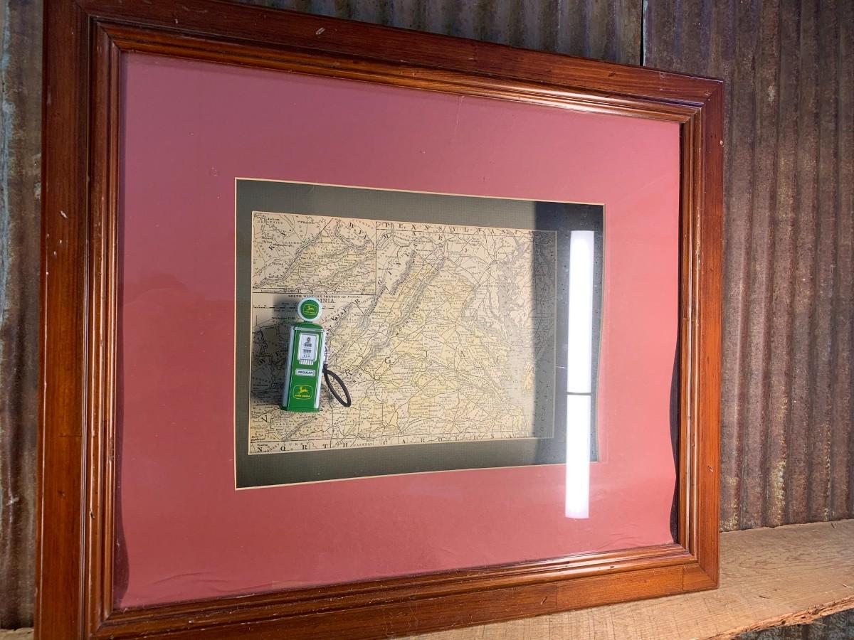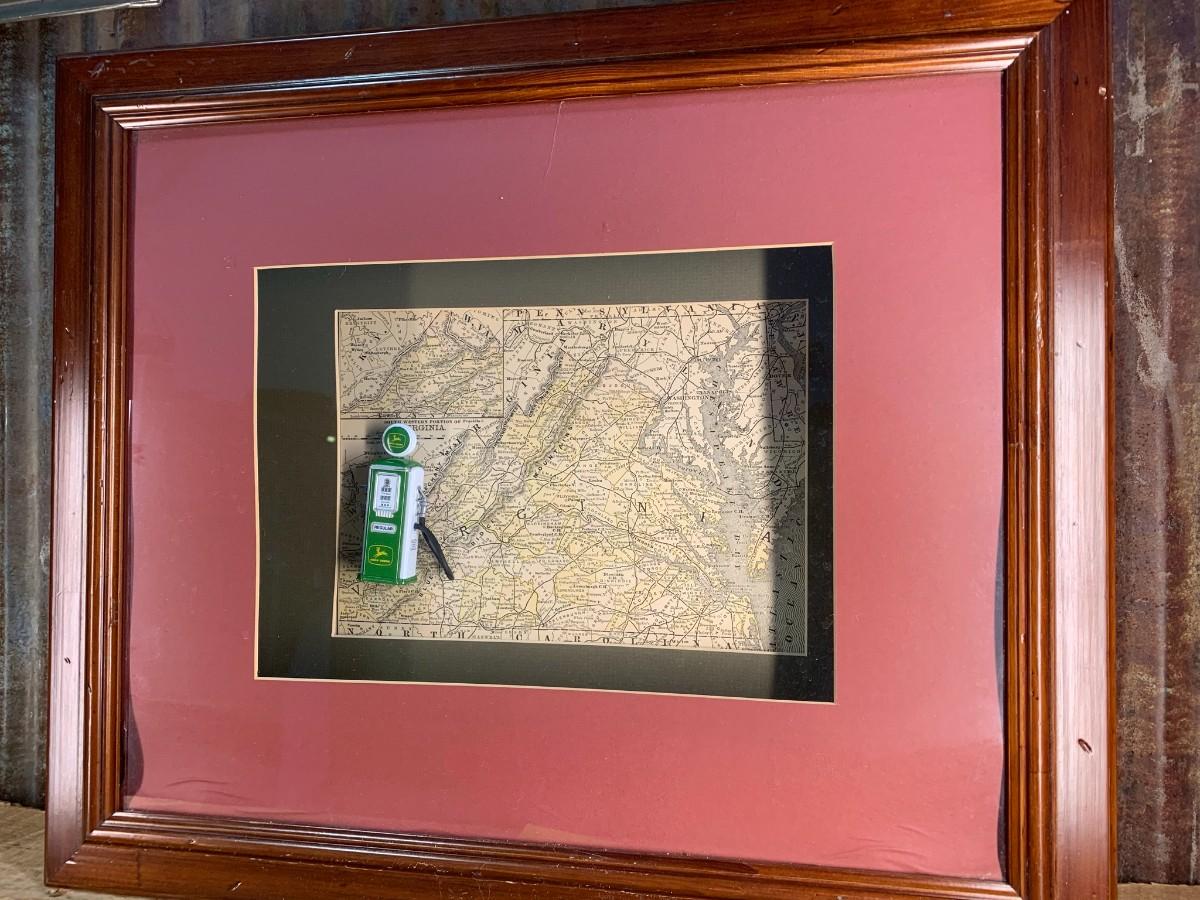 Nice Wood Frame, East Coast (NC/PA) map of John Deere Gas pumps, Matted and Framed, Signed on Back by Artist and Numbered (2997)- Winning Bid Buys All Items Shown, All Item(s) are Sold As Is - Photo's Are Part of the Description - Pickup by Appointment, or Shipping is Available (Buyer Pays)