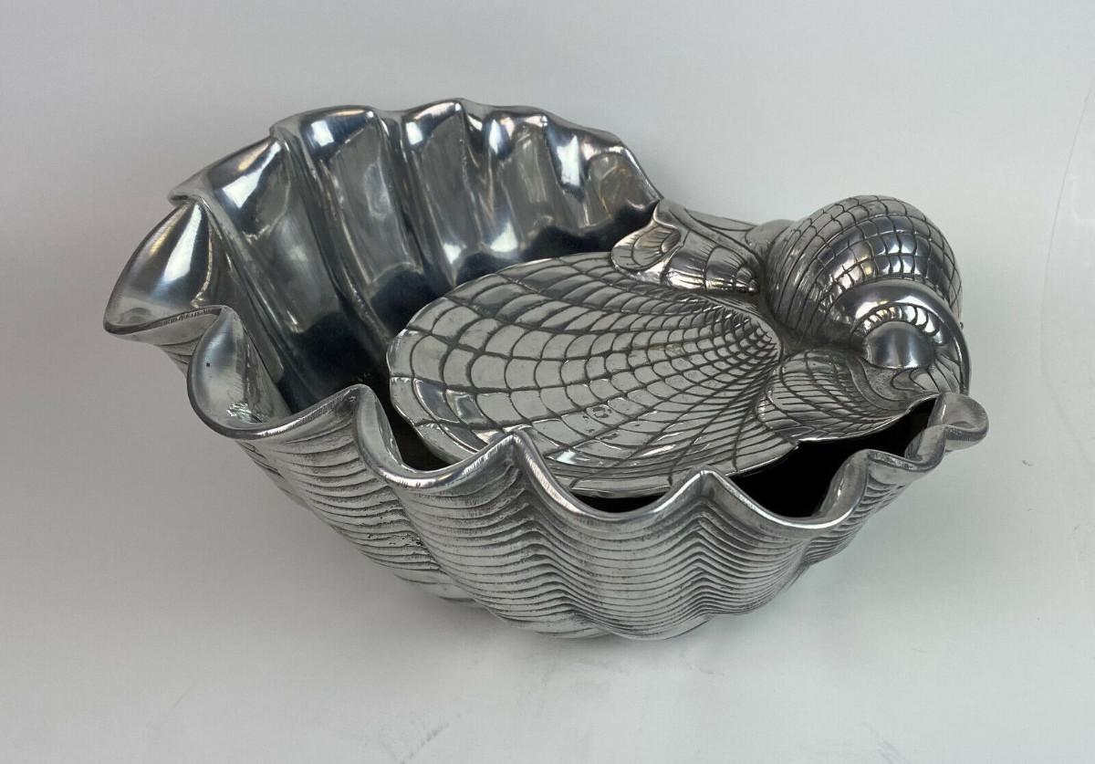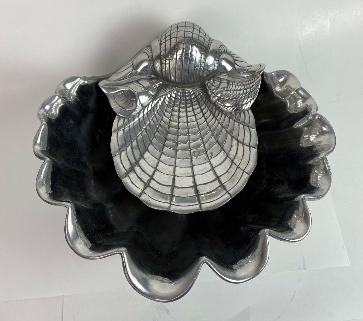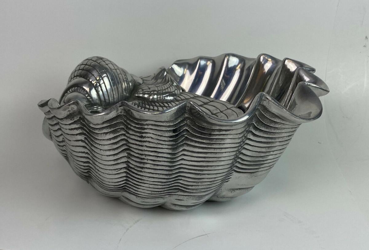 vintage ARTHUR COURT DESIGNS CLAM SHELL SERVER polished cast aluminum