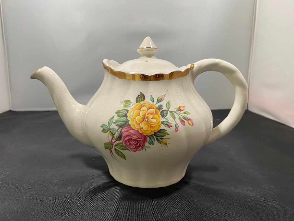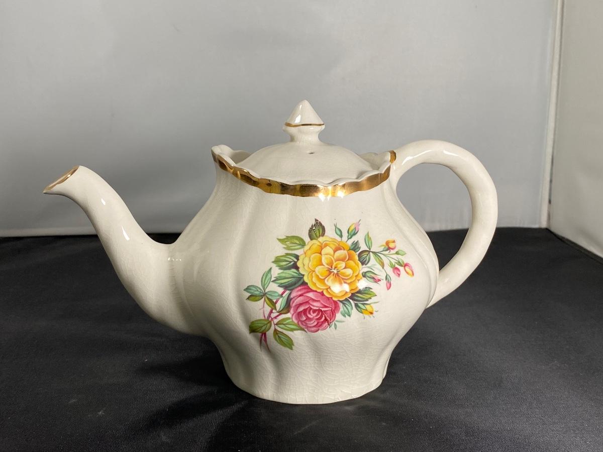 Vintage Arthur Wood England Floral Tea Pot. Highly crazed but displays nicely.