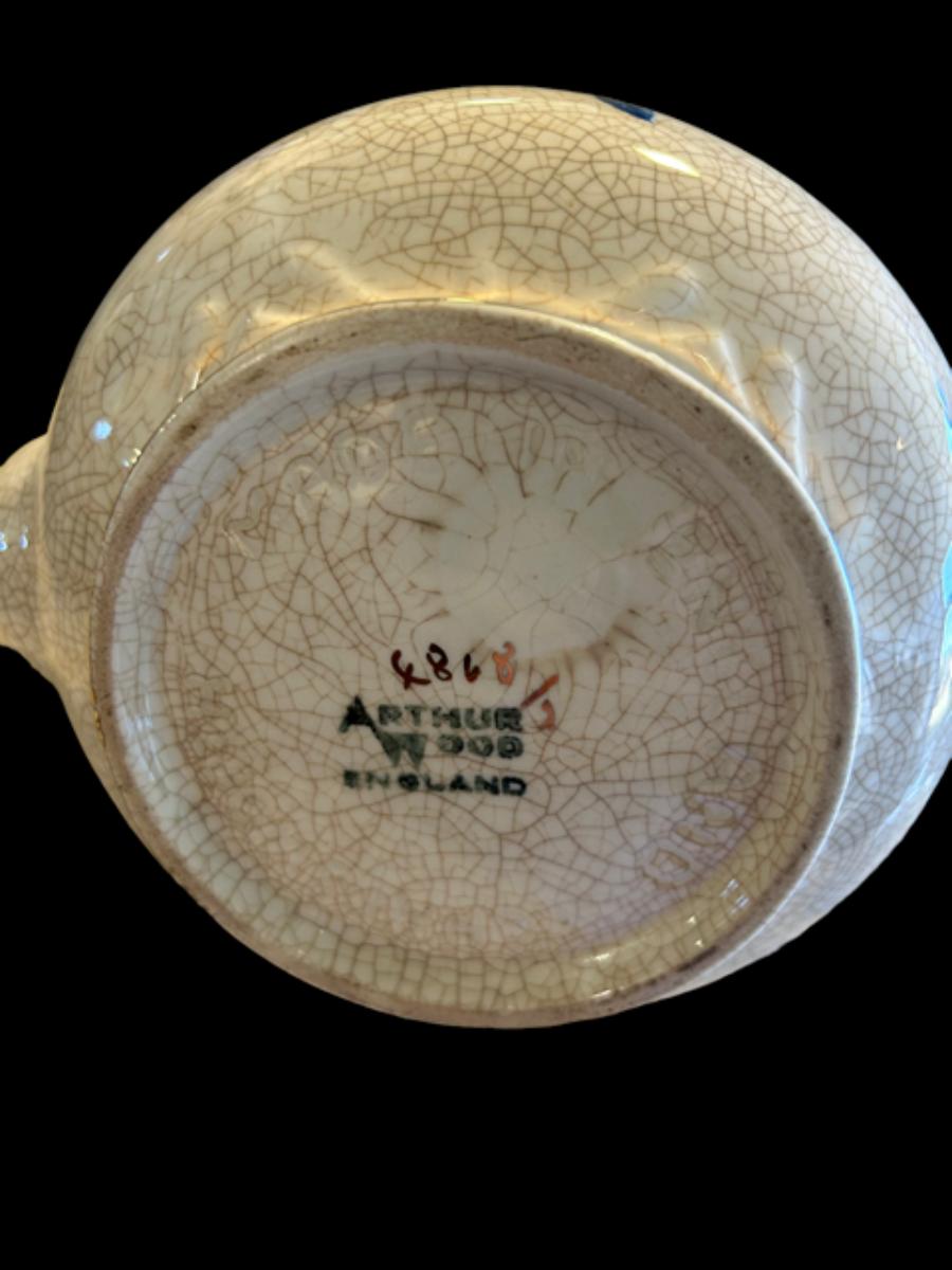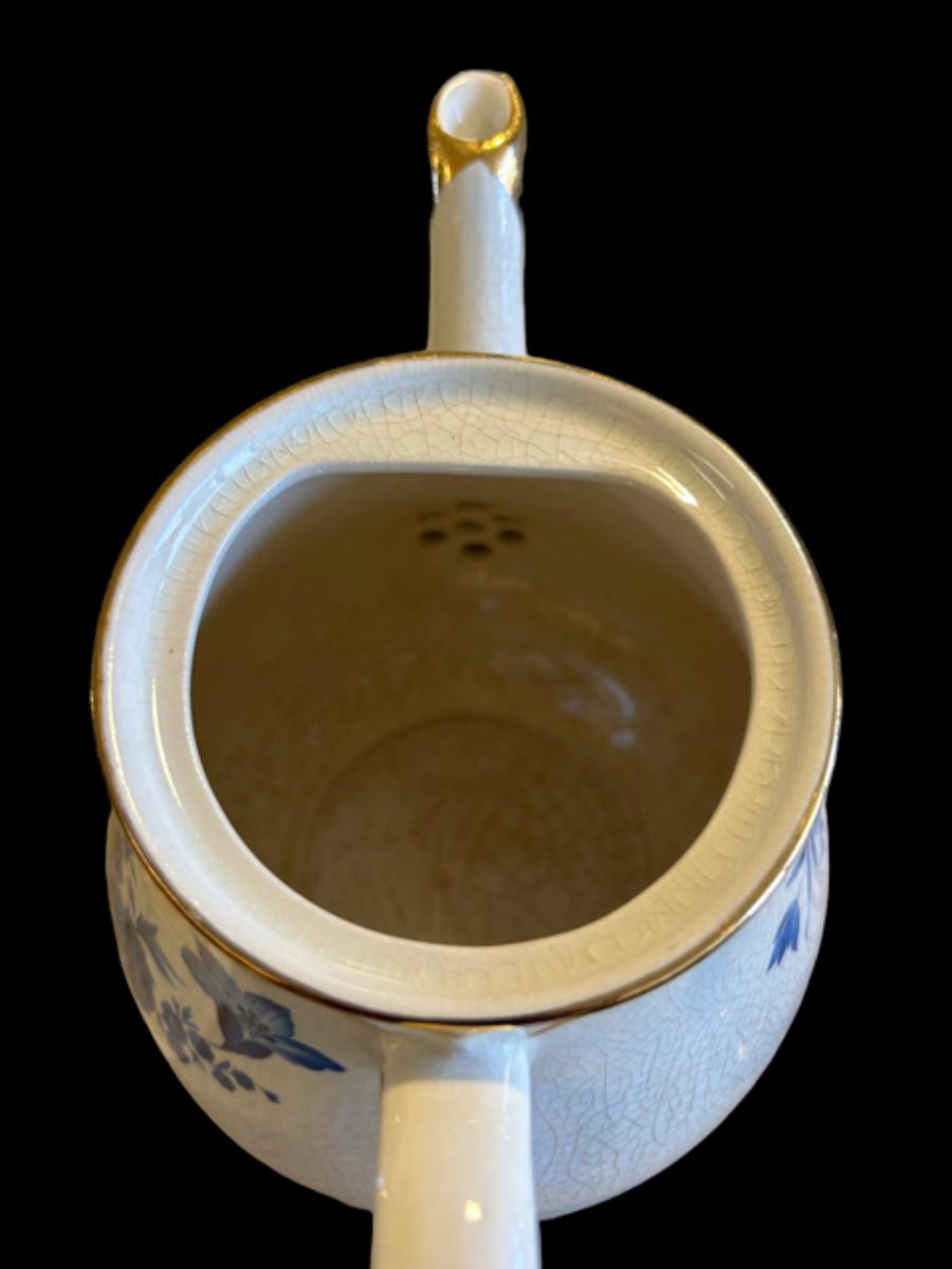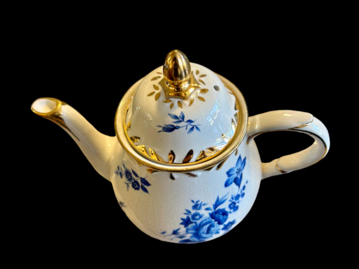 Vintage Arthur Wood Teapot fine china blue floral white gold trim. Manufactured in England. Good condition, moderate crazing.