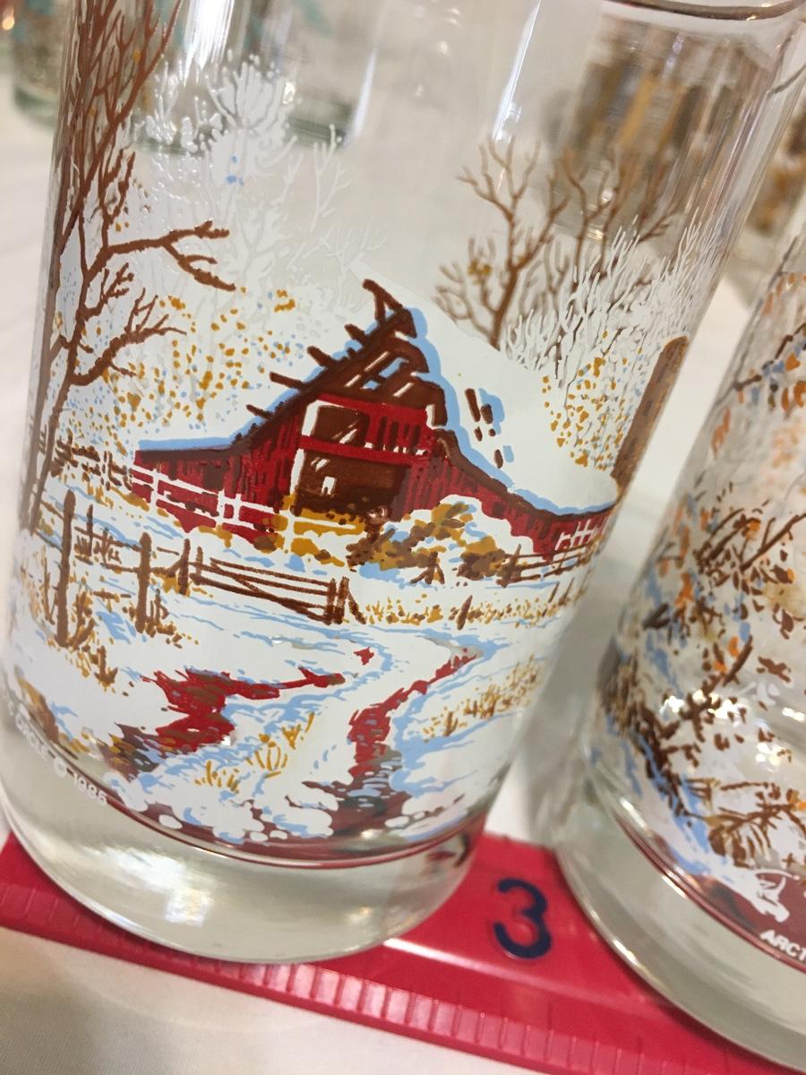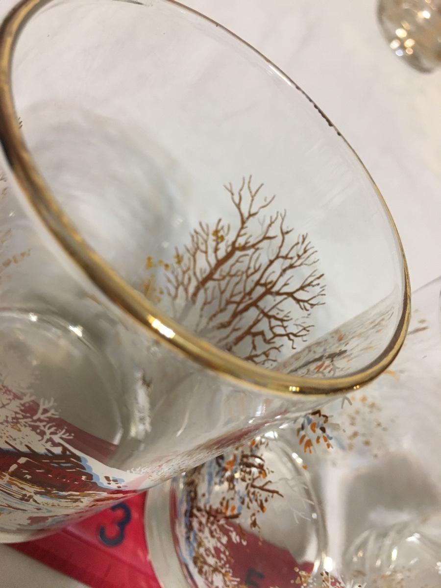 Vintage "ARTIC CIRCLE 1985 Old Fashioned Gold Rimmed Glasses" ~ Winter Farmhouse