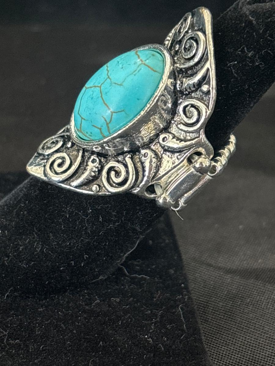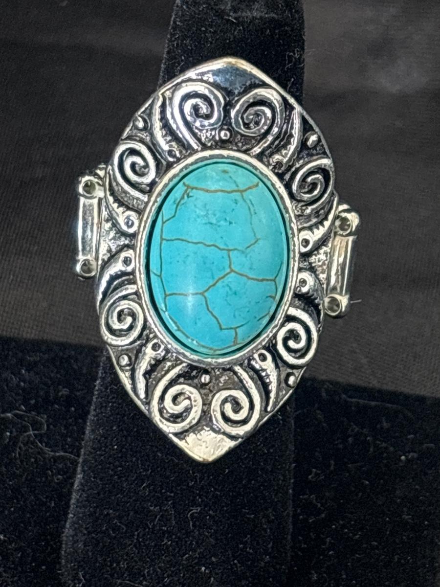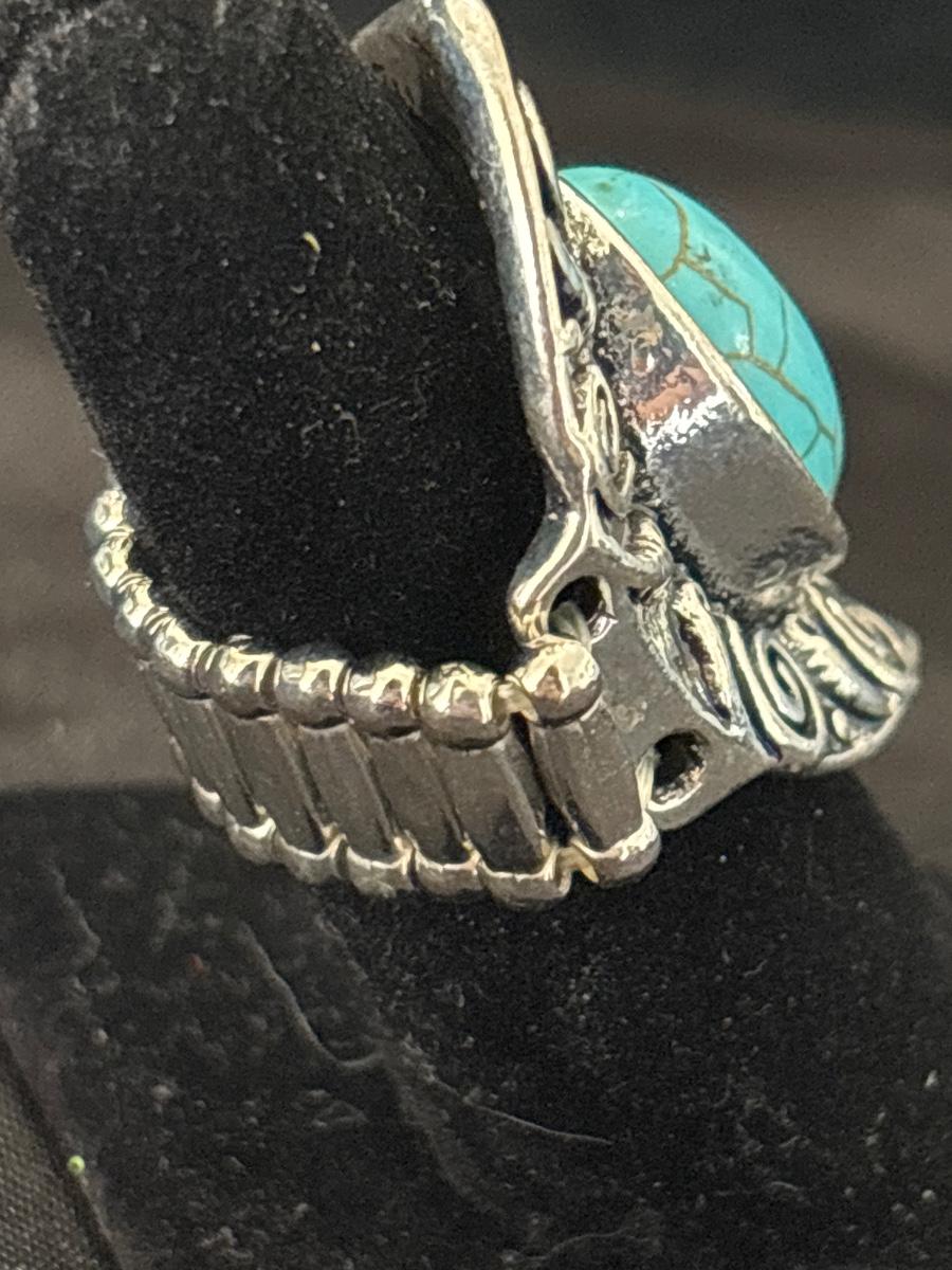 Vintage Artisan Howlite/Turquoise Cocktail stretchy Ring