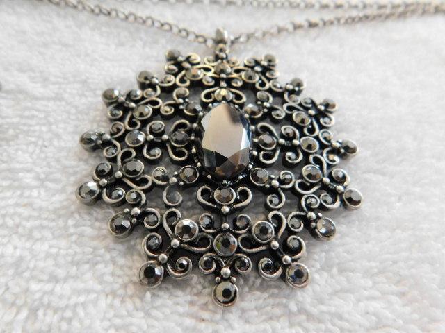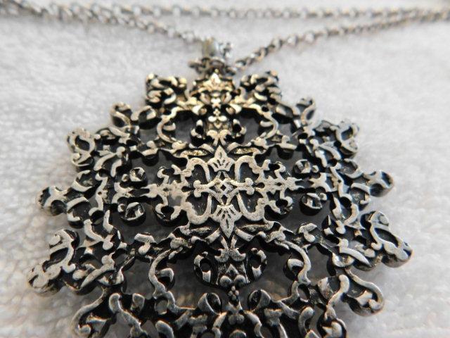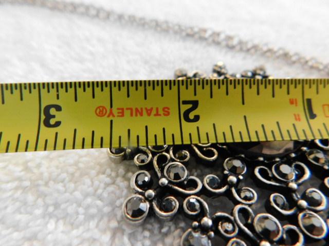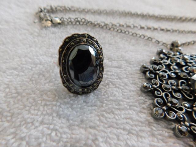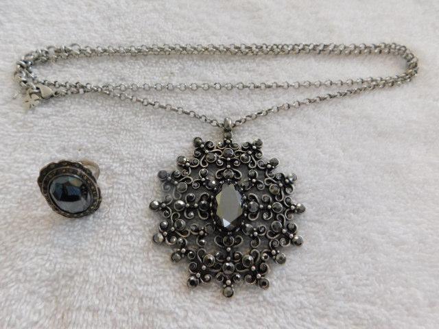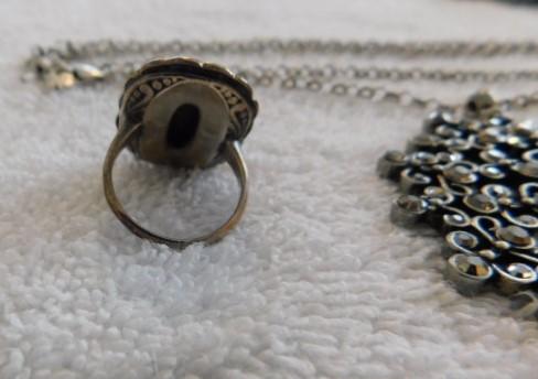 Vintage Artisan Pendant with Marquise Black Gem and Sterling Oval Gem Ring. Ring has some studs missing. Pnedant is 2.5" and chain 16" closed measurement