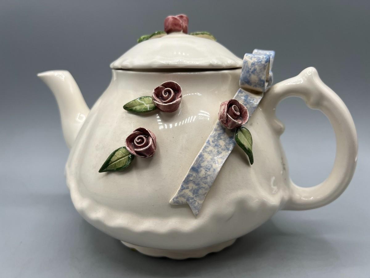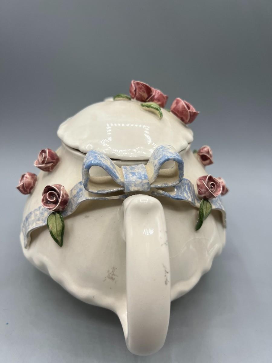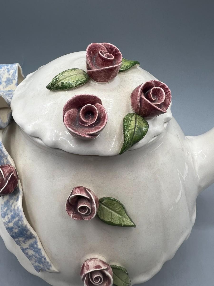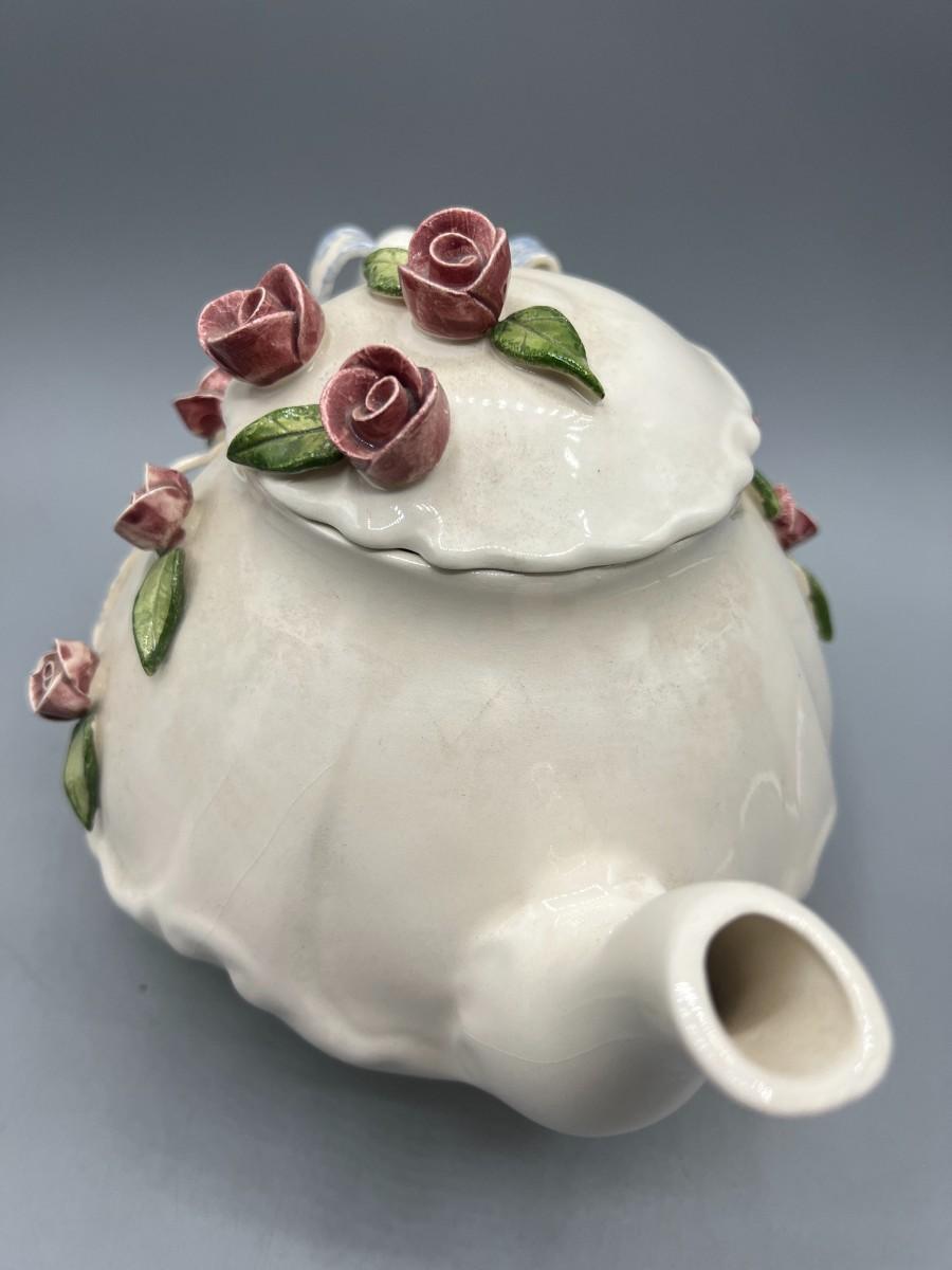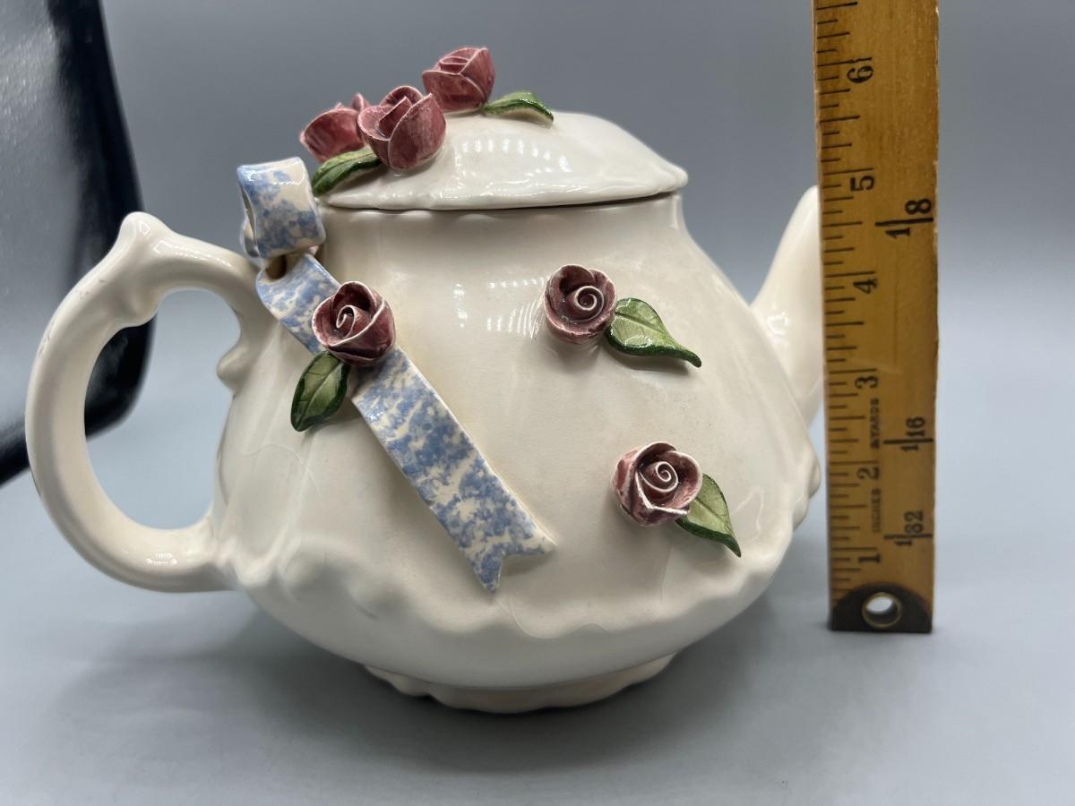 Vintage Artist Signed Ceramic Art Flower Rose Teapot