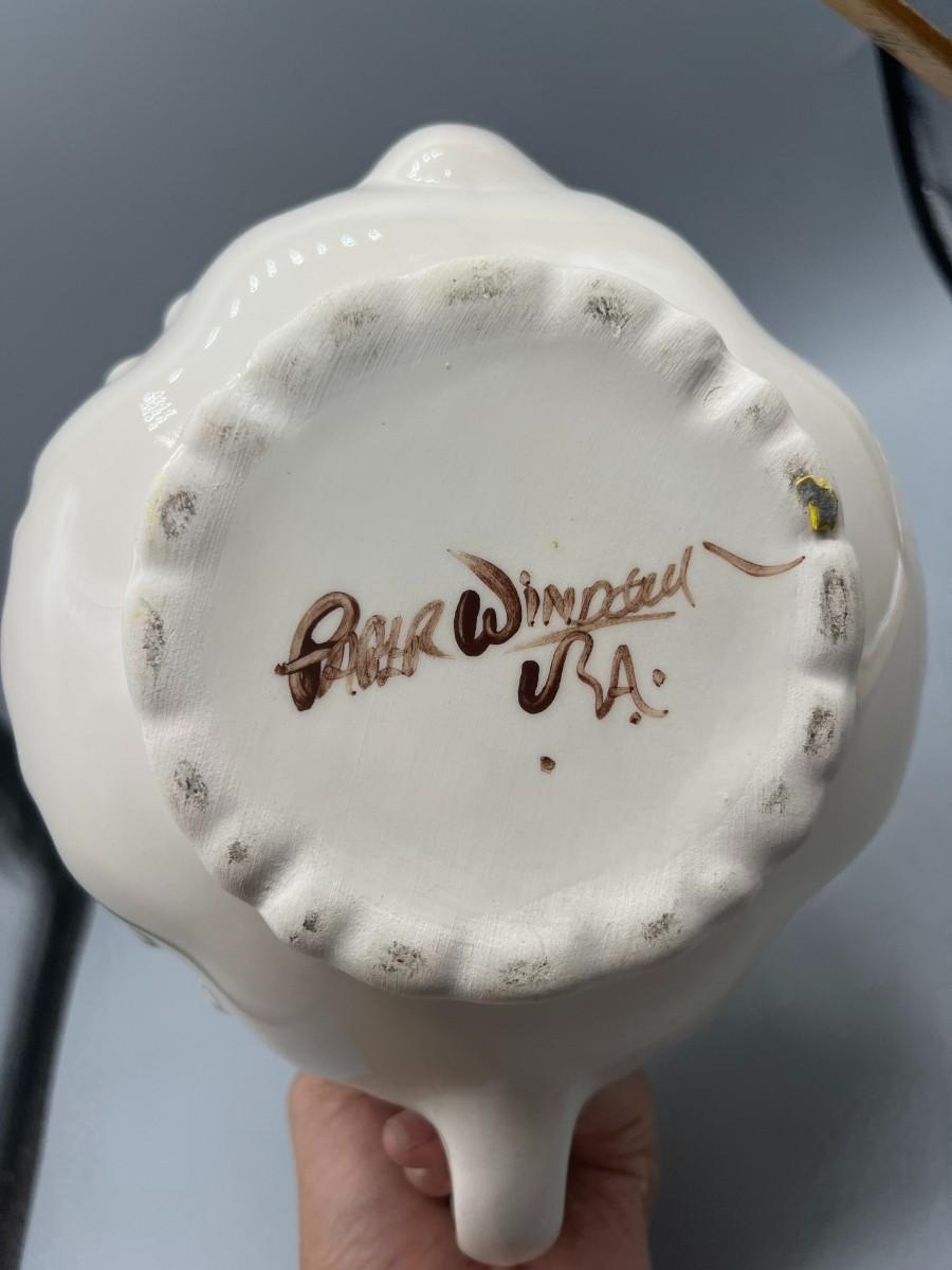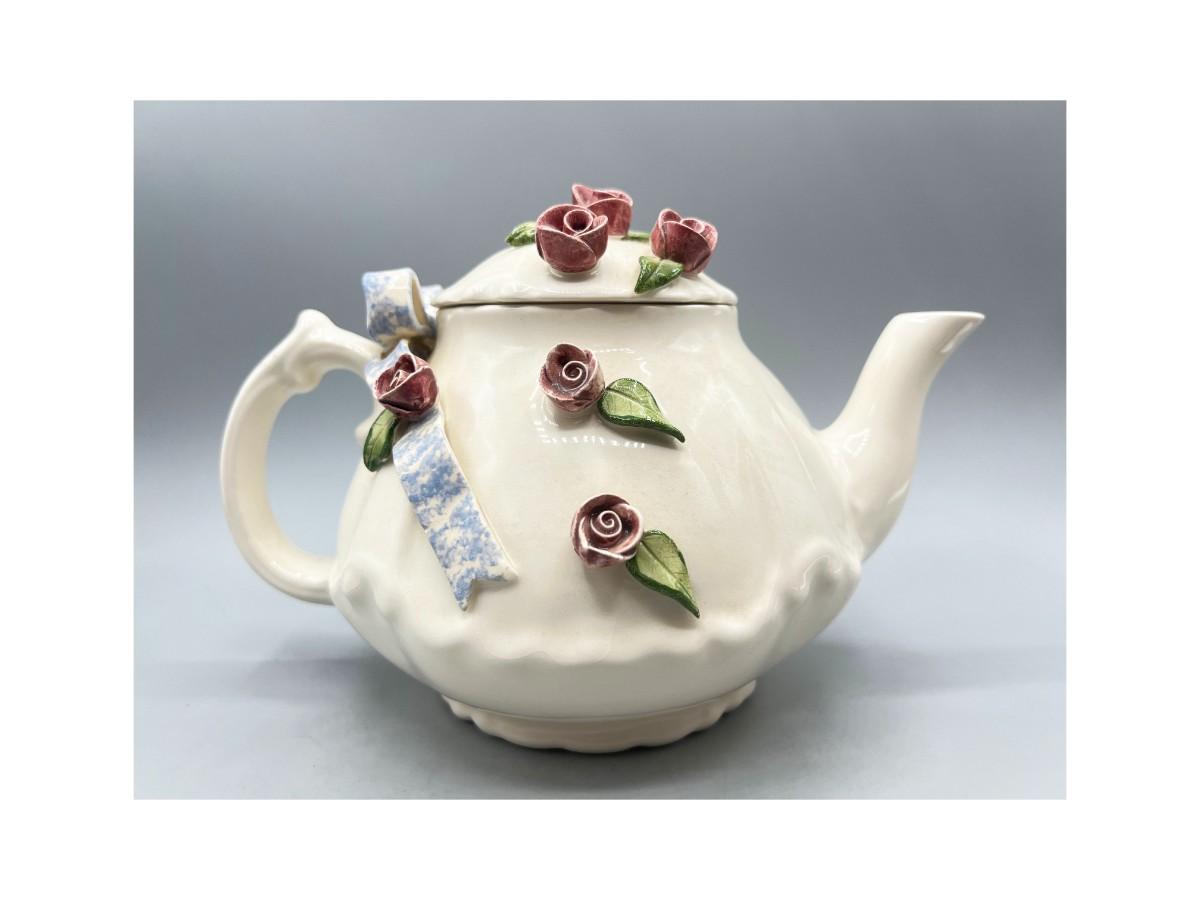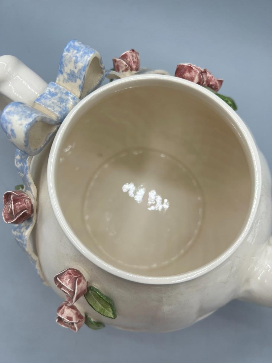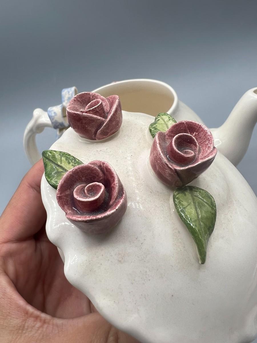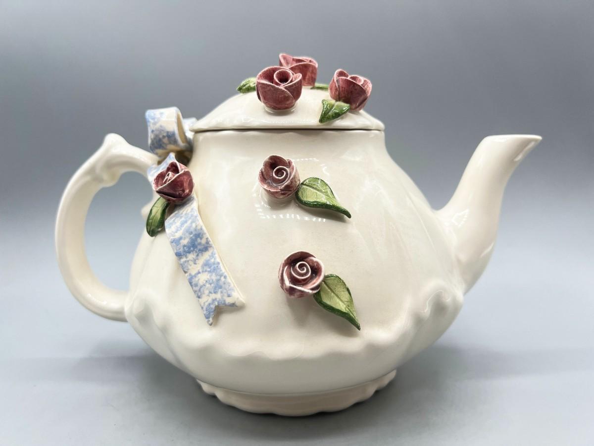 Vintage Artist Signed Ceramic Art Flower Rose Teapot