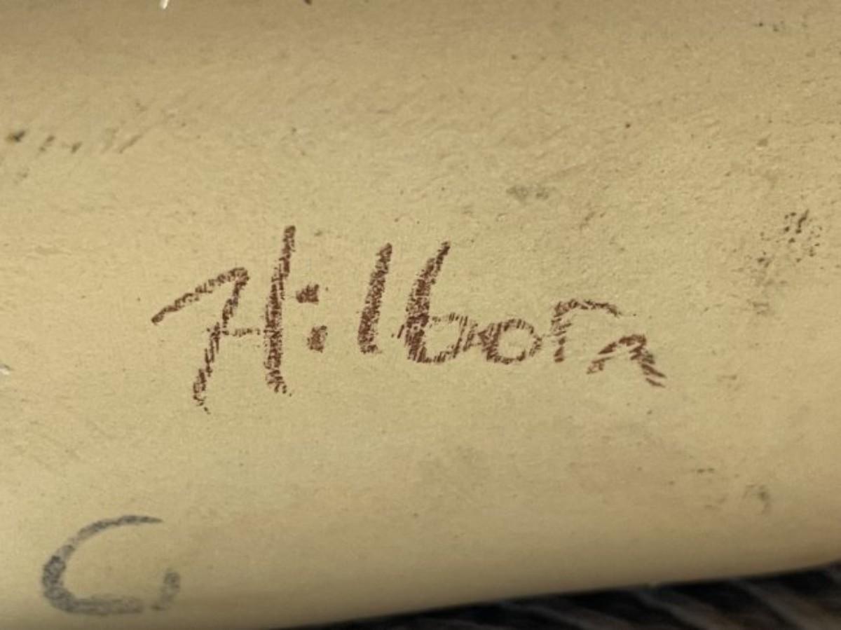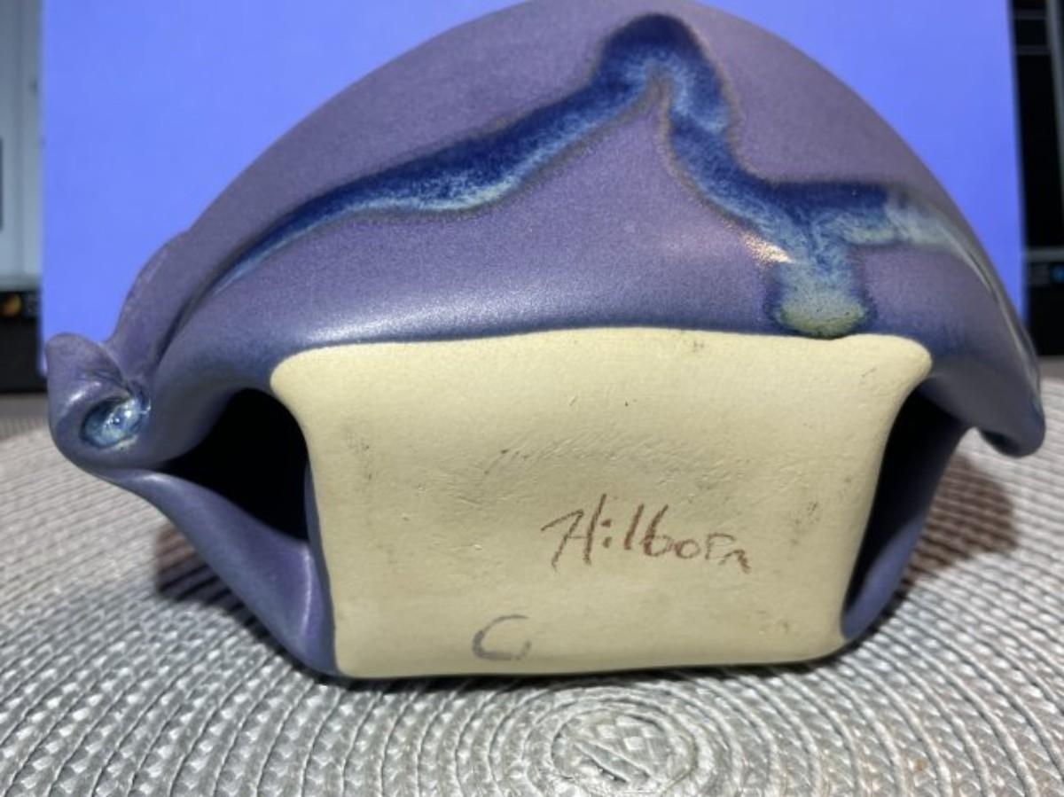 VINTAGE ARTIST SIGNED HILBORN BLUE/PURPLE GLAZED FANCY MID CENTURY STYLE PINCH POTTERY BOWL 6" X 4" IN VG PREOWNED CONDITION.