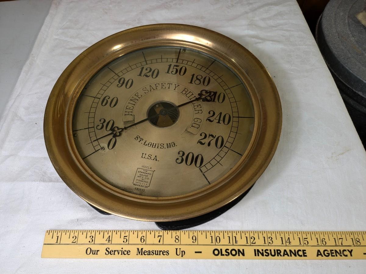 Vintage Ashton Valve Co. Brass Heine Boiler Steam Gauge Steampunk