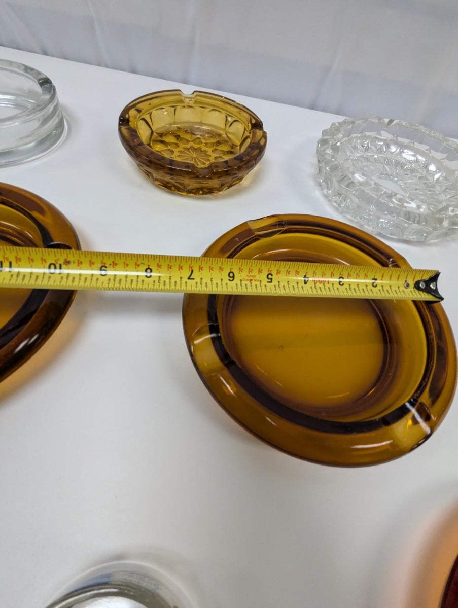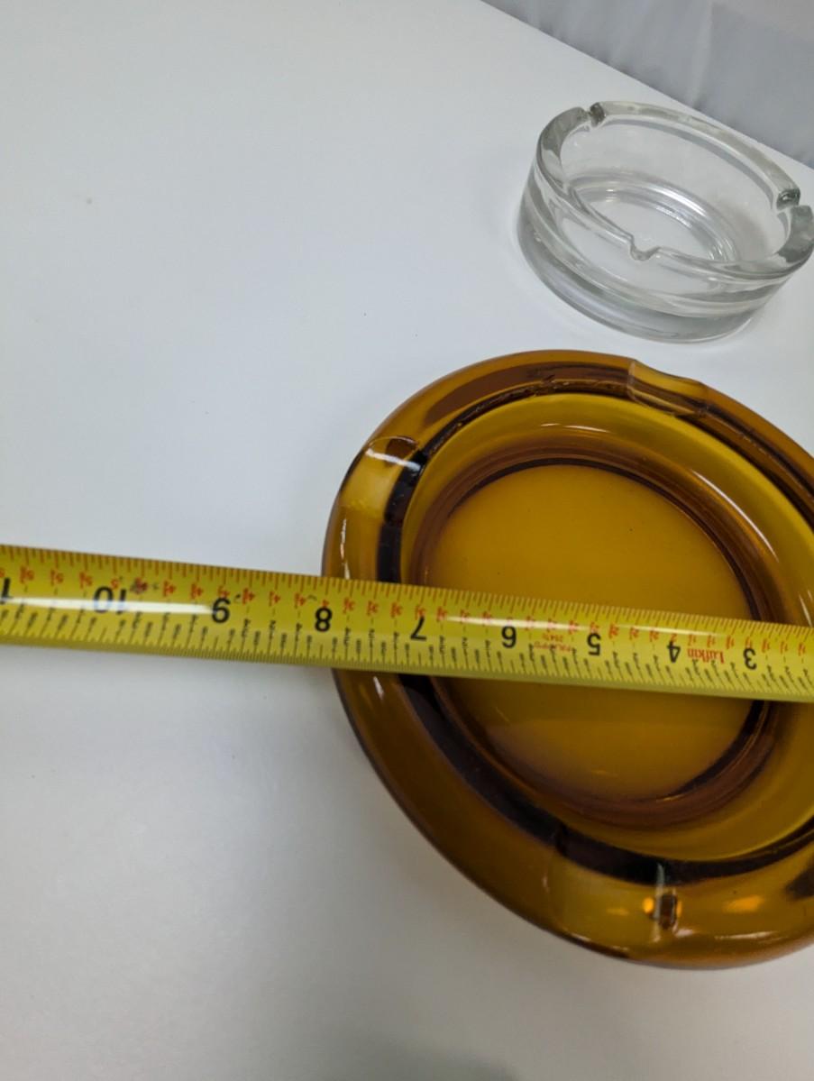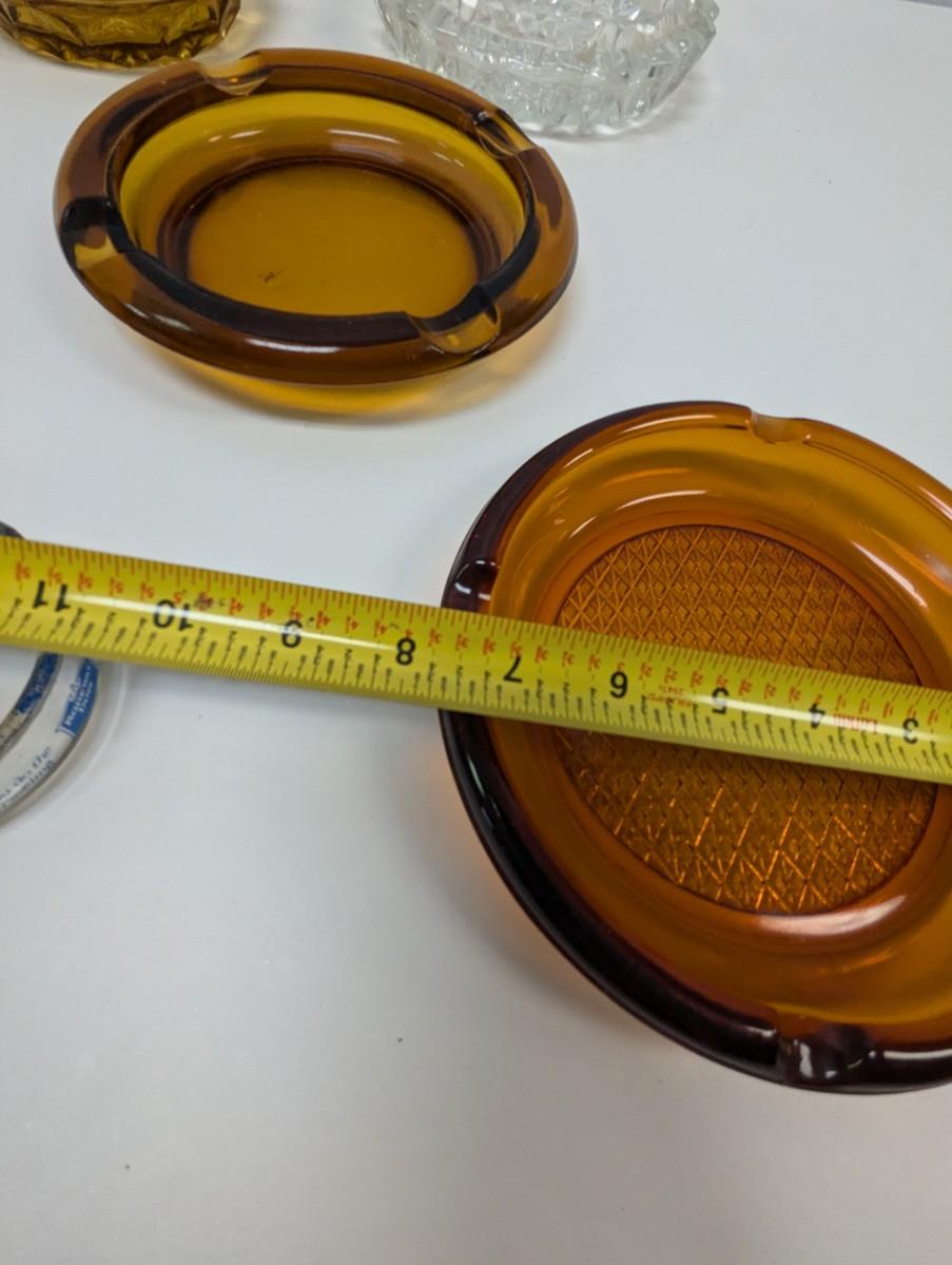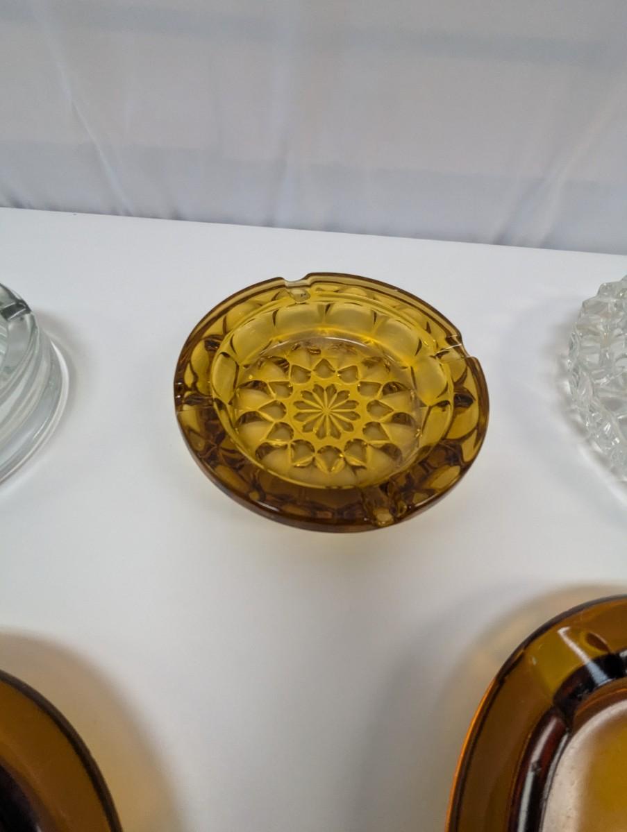 One amber ashtray has some chips and one amber ashtray has a crack that I noticed