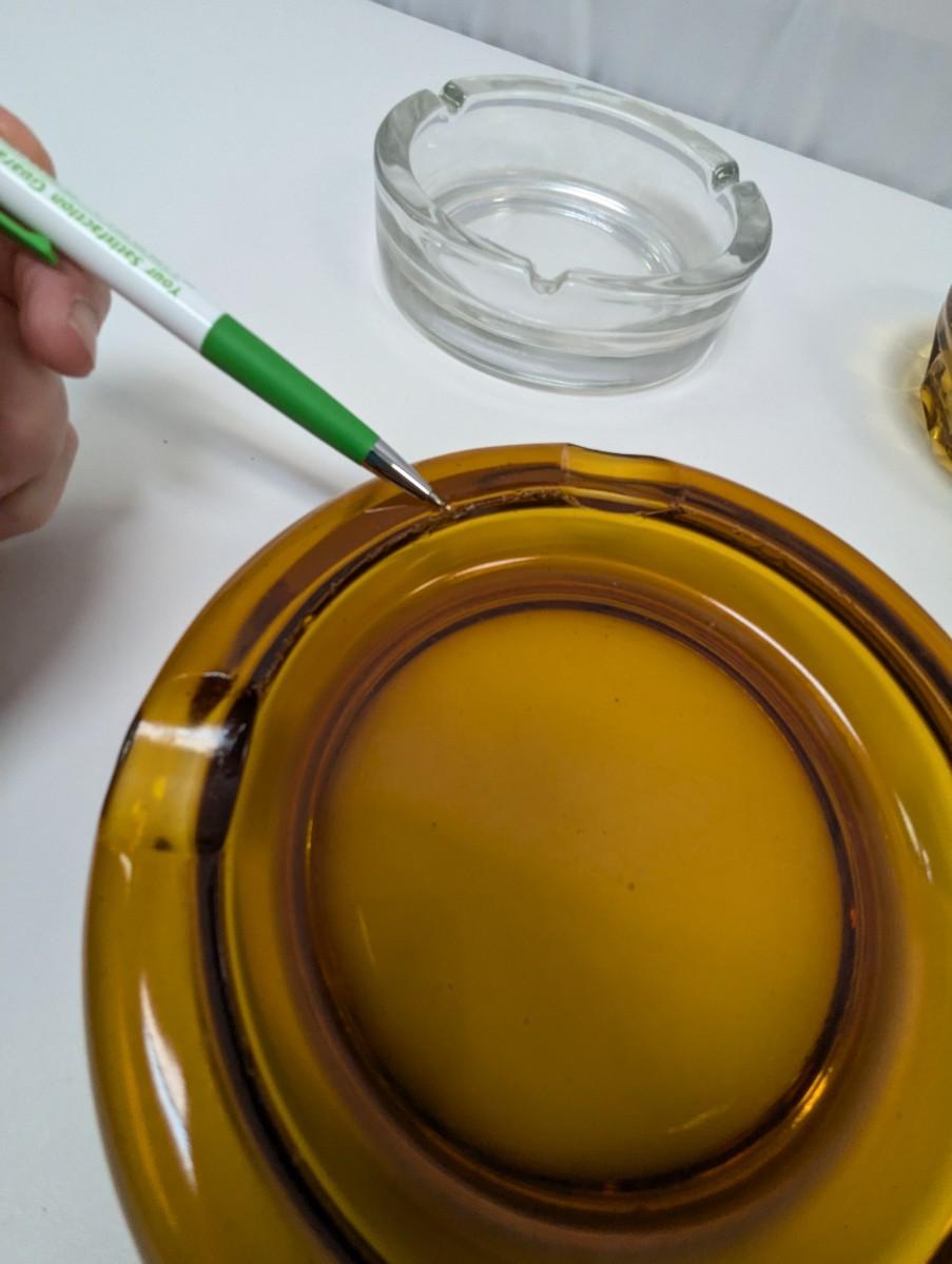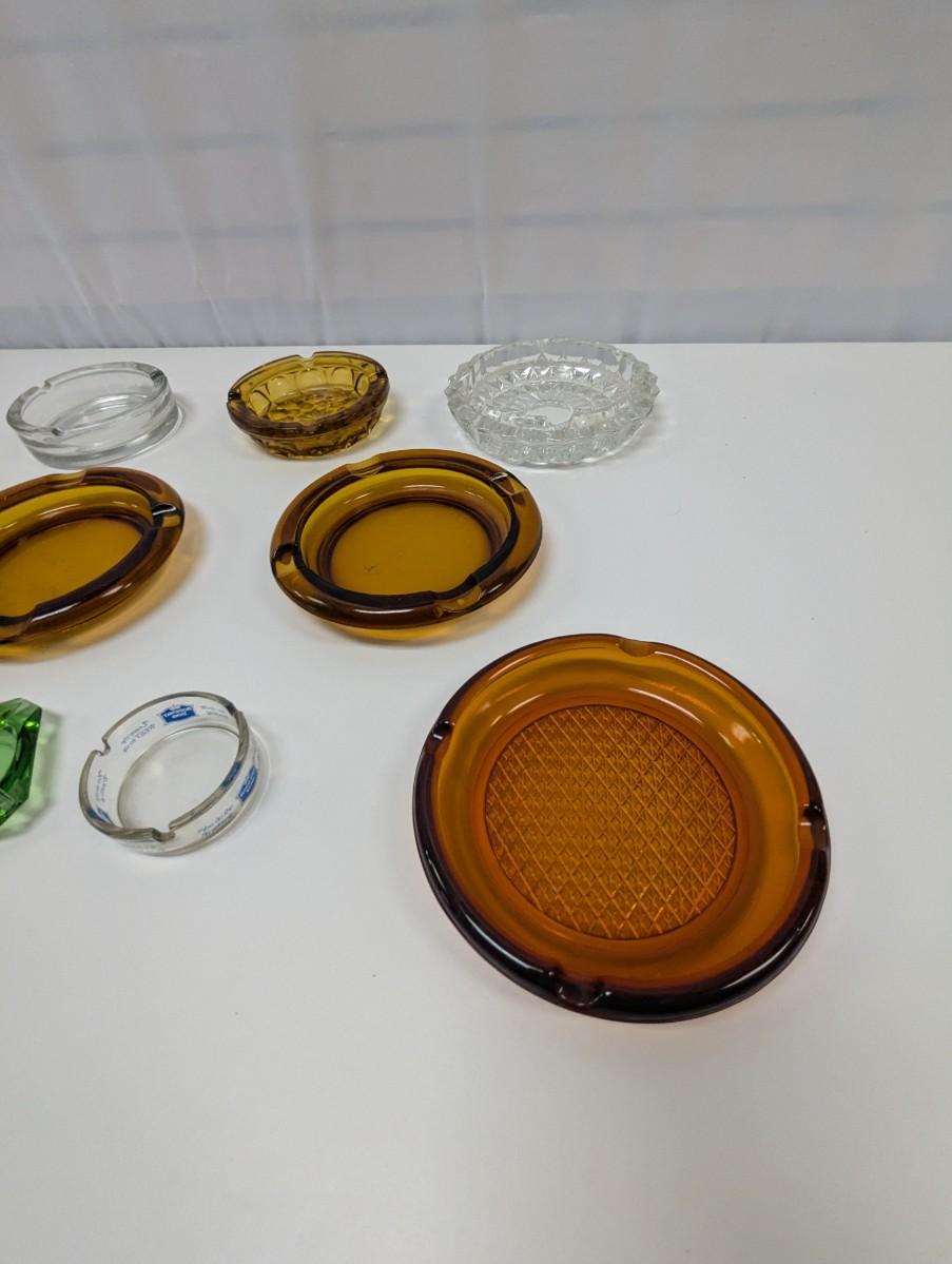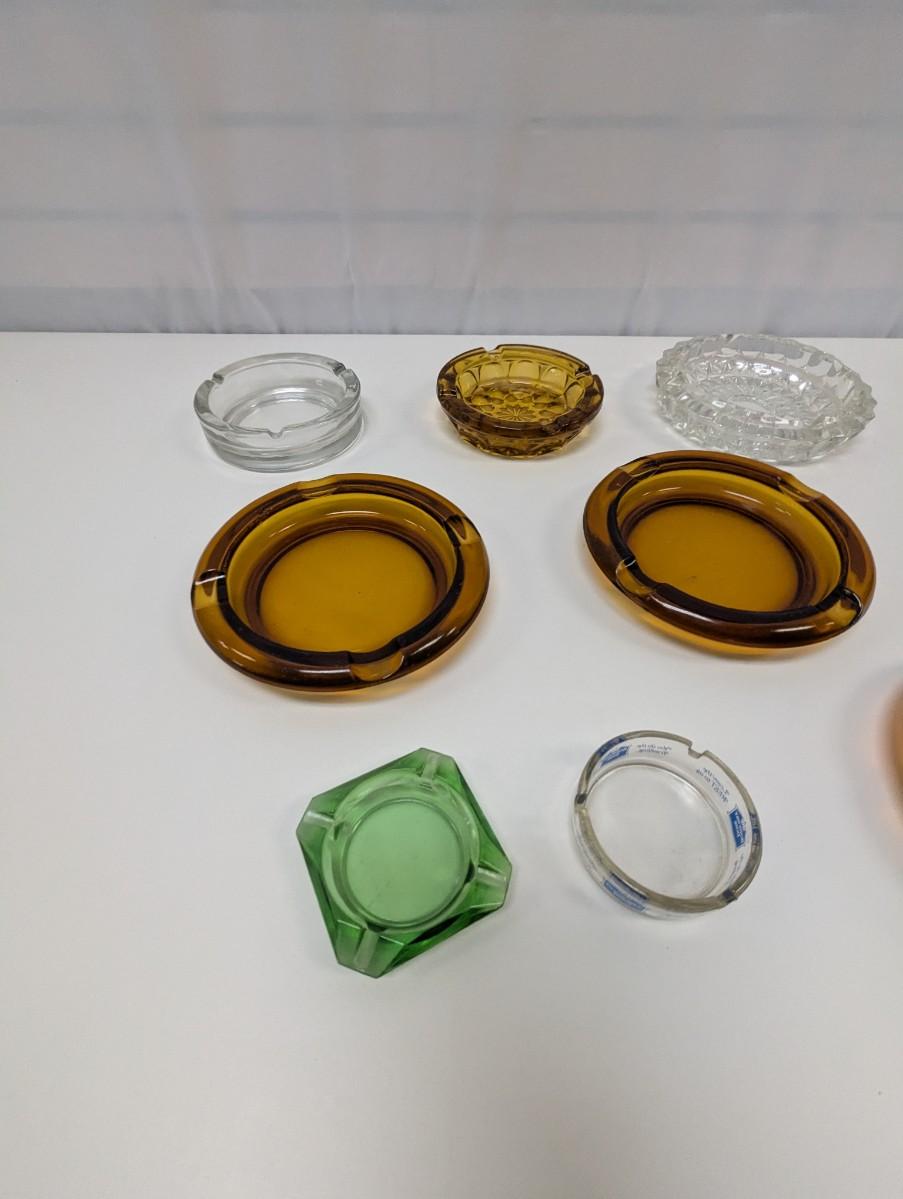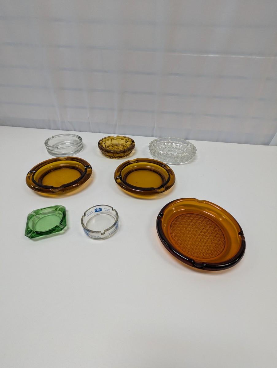 One amber ashtray has some chips and one amber ashtray has a crack that I noticed