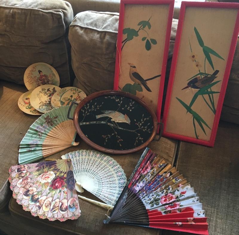 Vintage Asian Art and Fan Collection