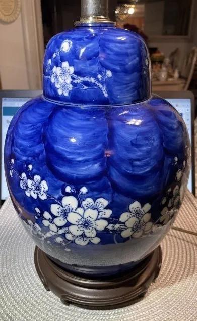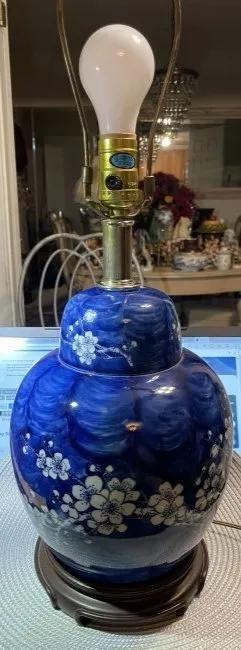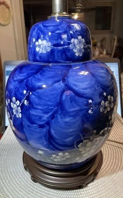 Vintage Asian Blue Swirl Floral Ginger Jar Lamp in VG Preowned Condition from an Estate. $18 DOMESTIC INHOUSE SHIPPING.