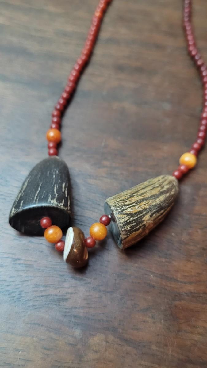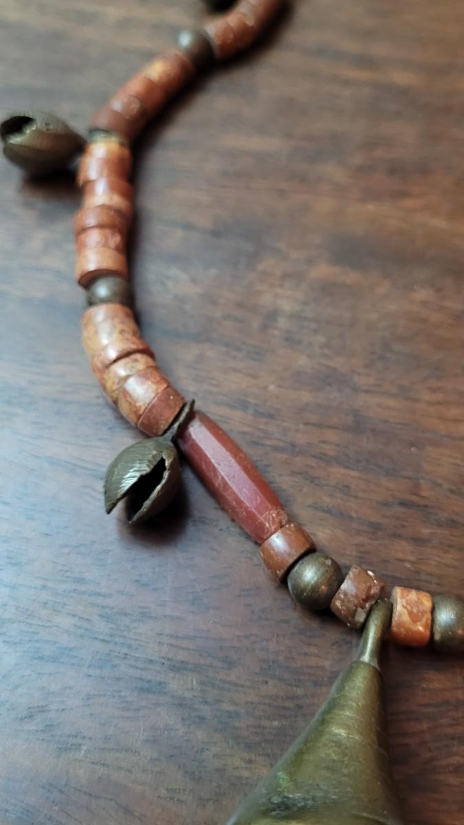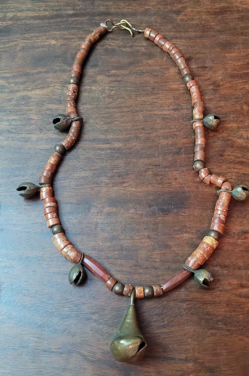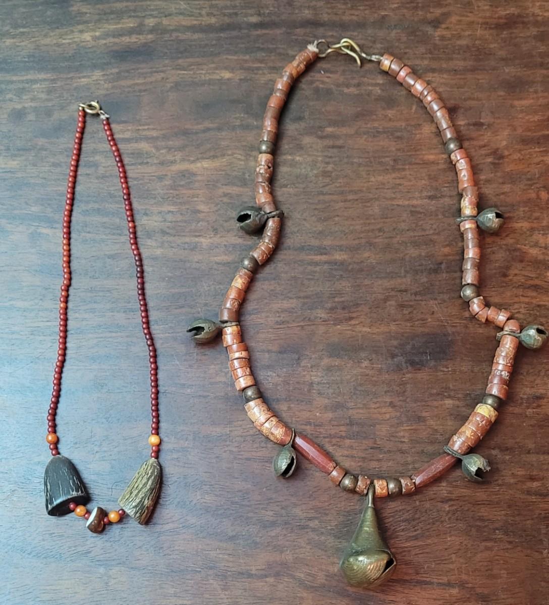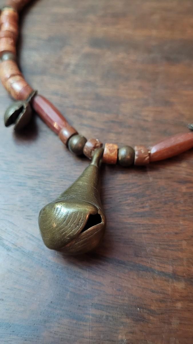 Vintage Asian Brass Bell Necklace and Buffalo Horn Necklace