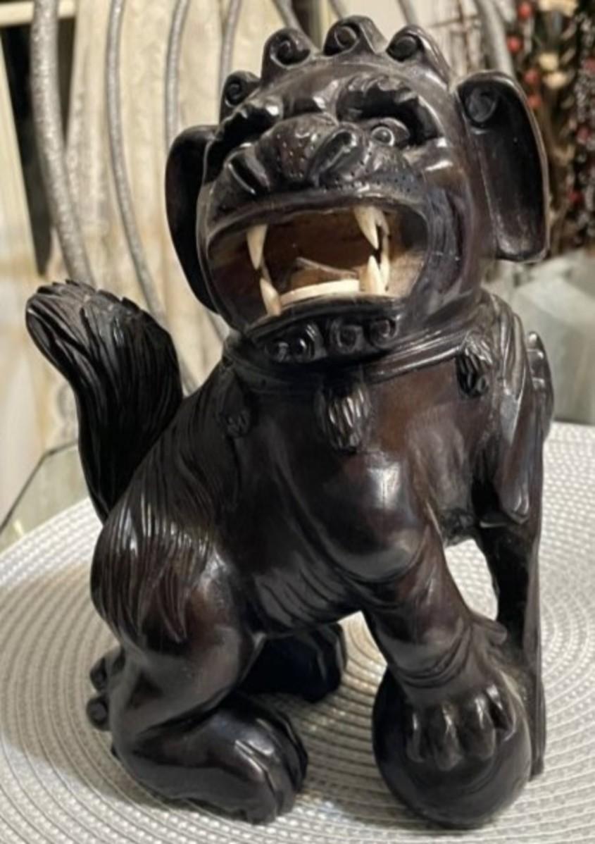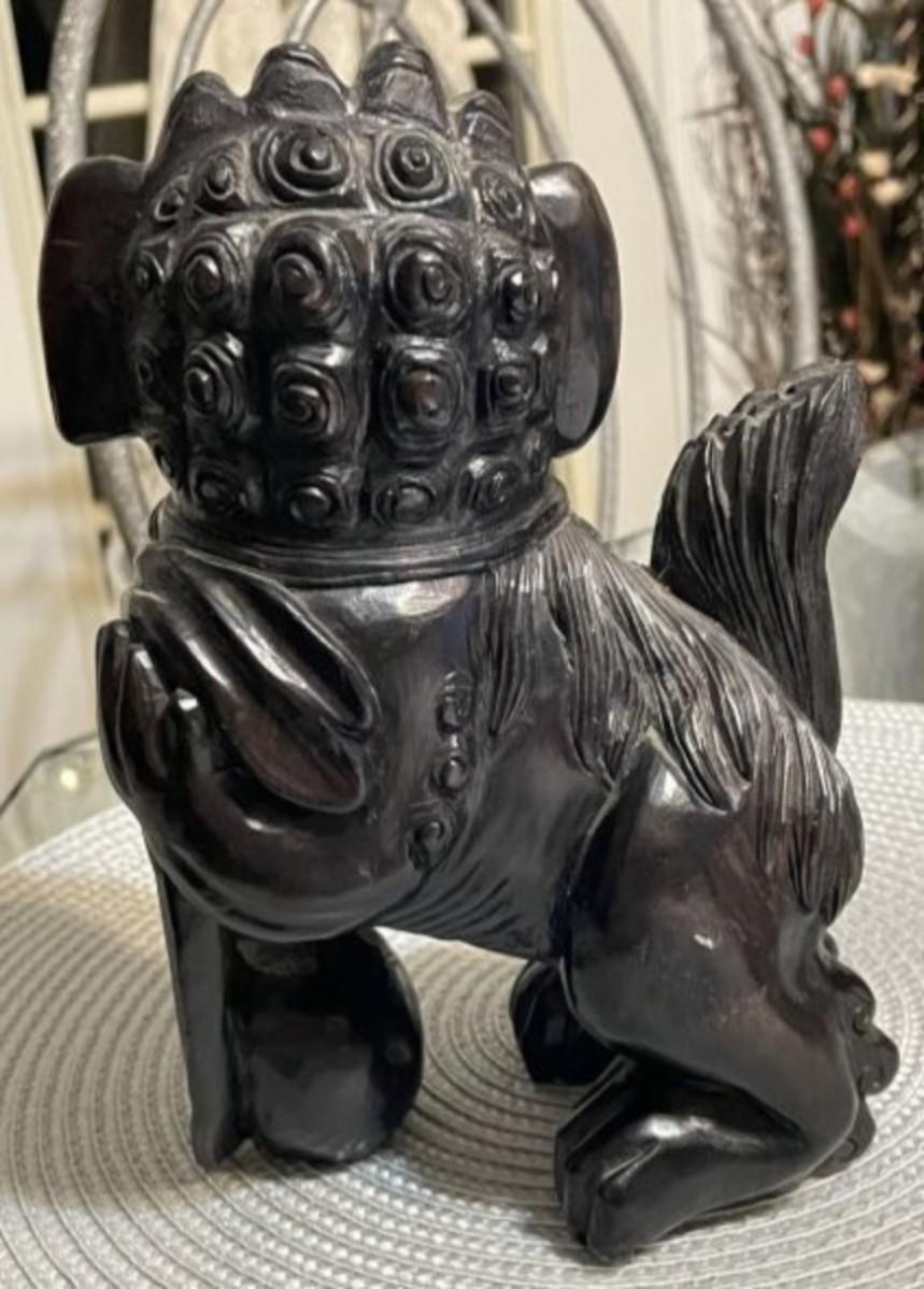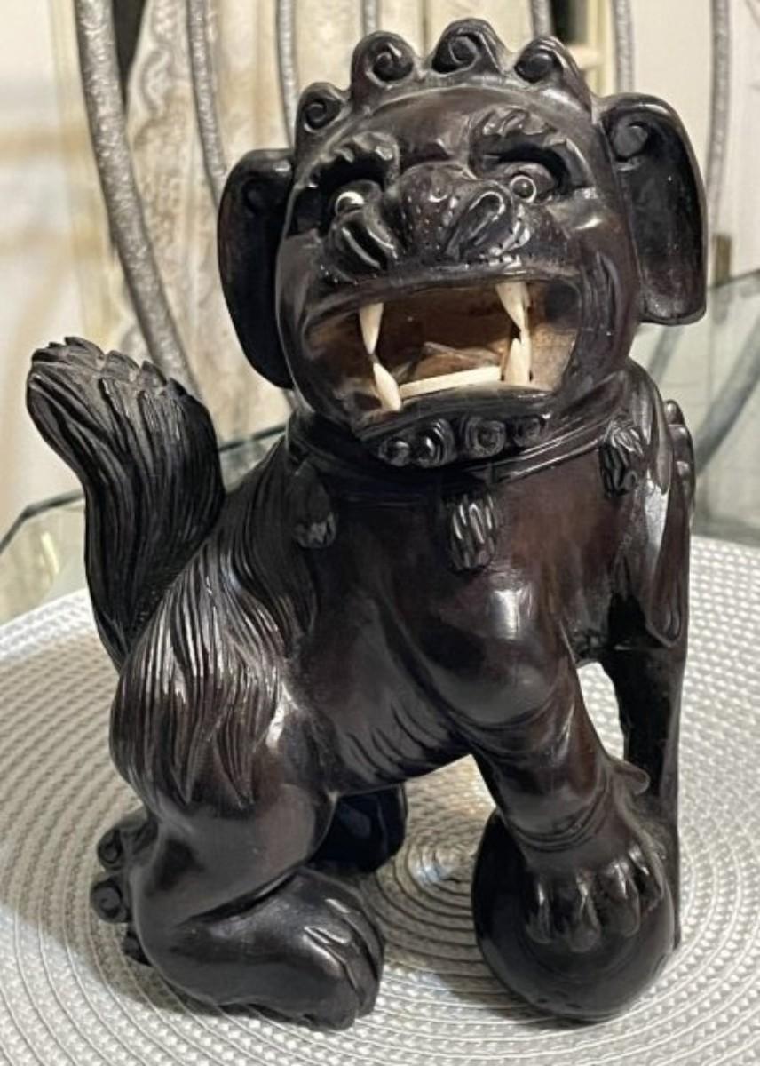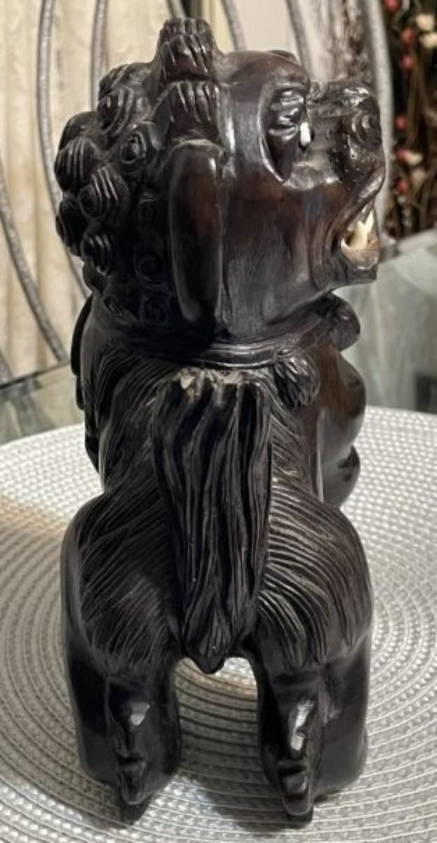 VINTAGE Asian c1900 Hand Carved Hard Wooden Foo Dog Lion Figure 8.25" Tall & 5.5" Wide in Good Preowned Condition as Pictured.