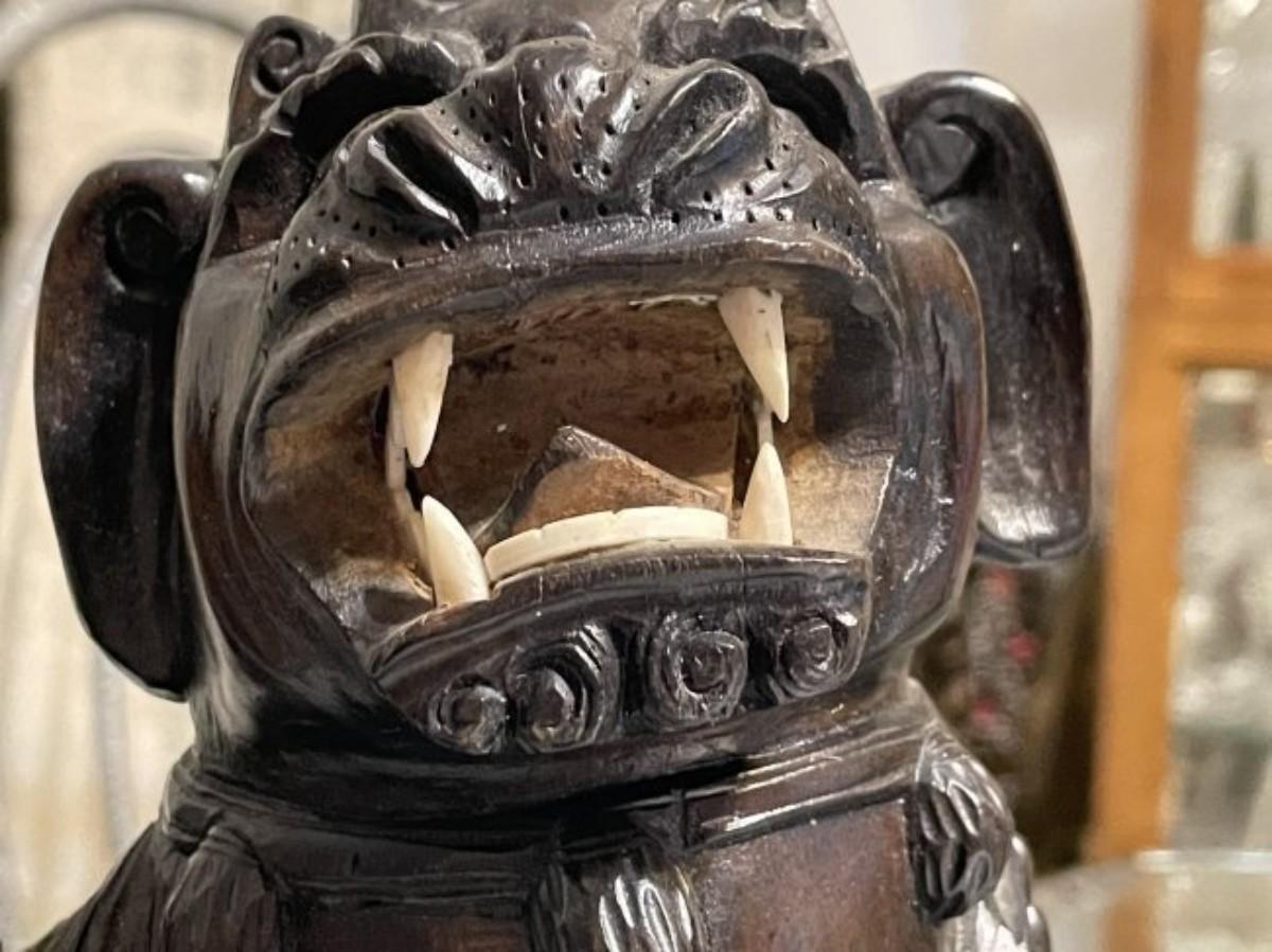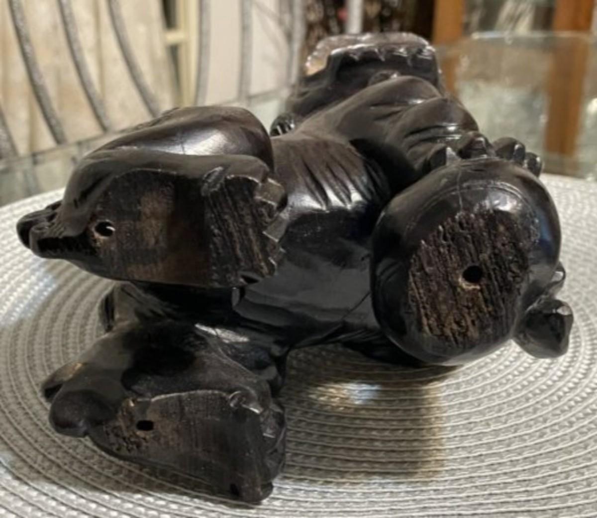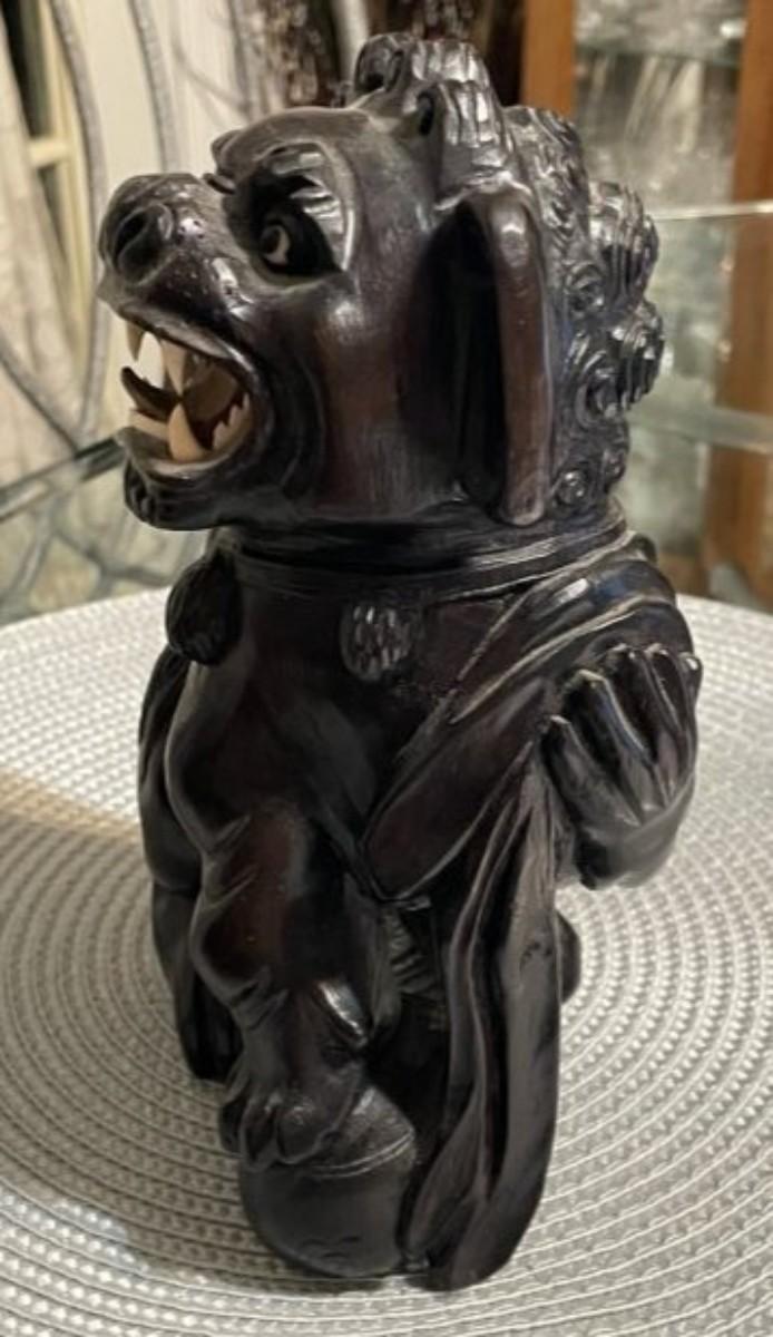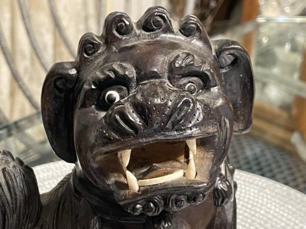 VINTAGE Asian c1900 Hand Carved Hard Wooden Foo Dog Lion Figure 8.25" Tall & 5.5" Wide in Good Preowned Condition as Pictured.