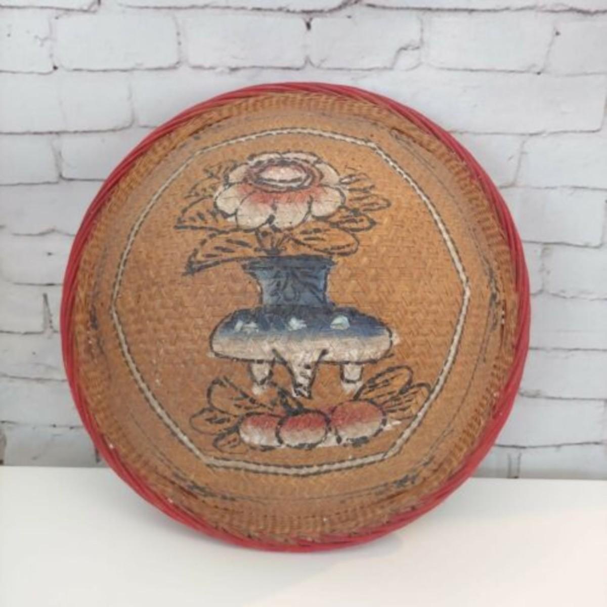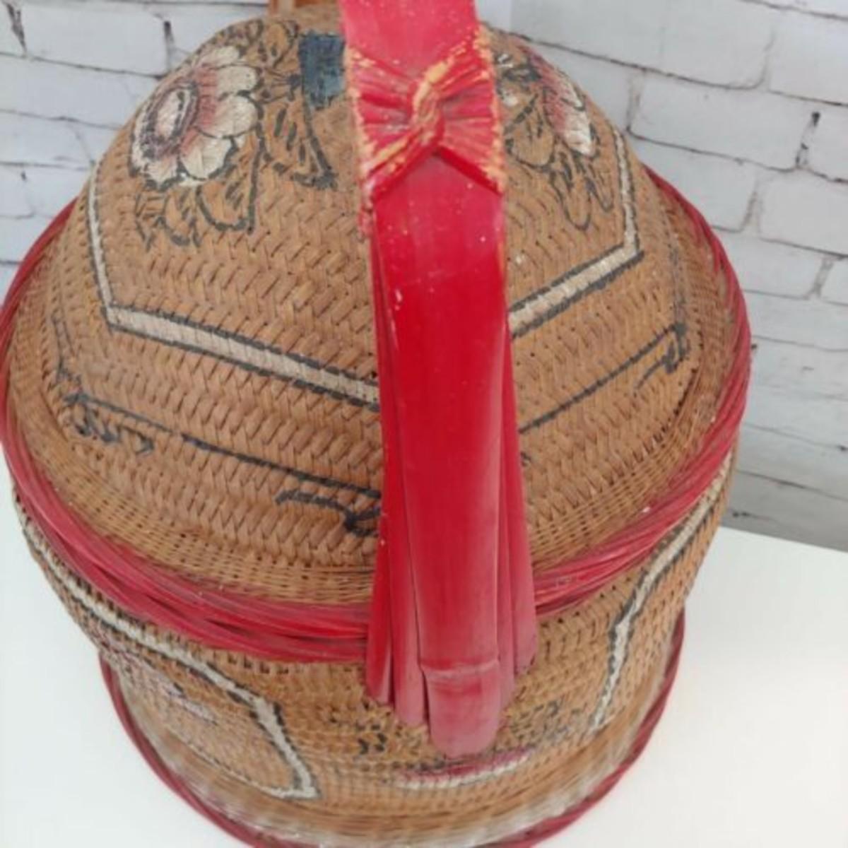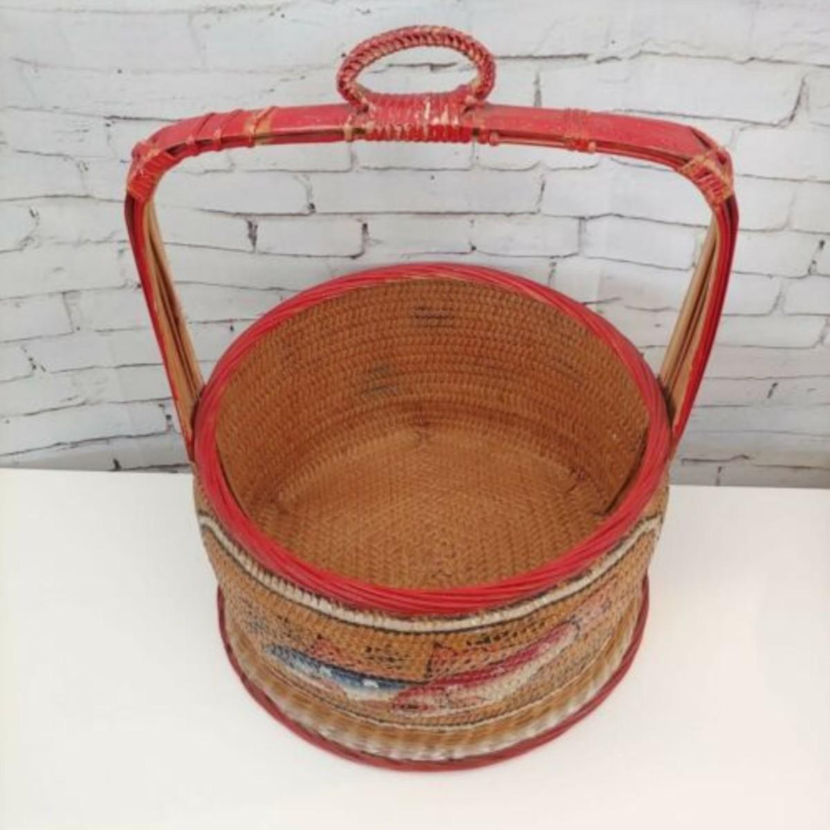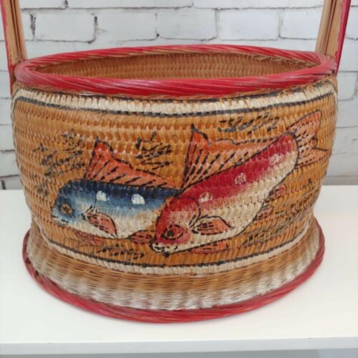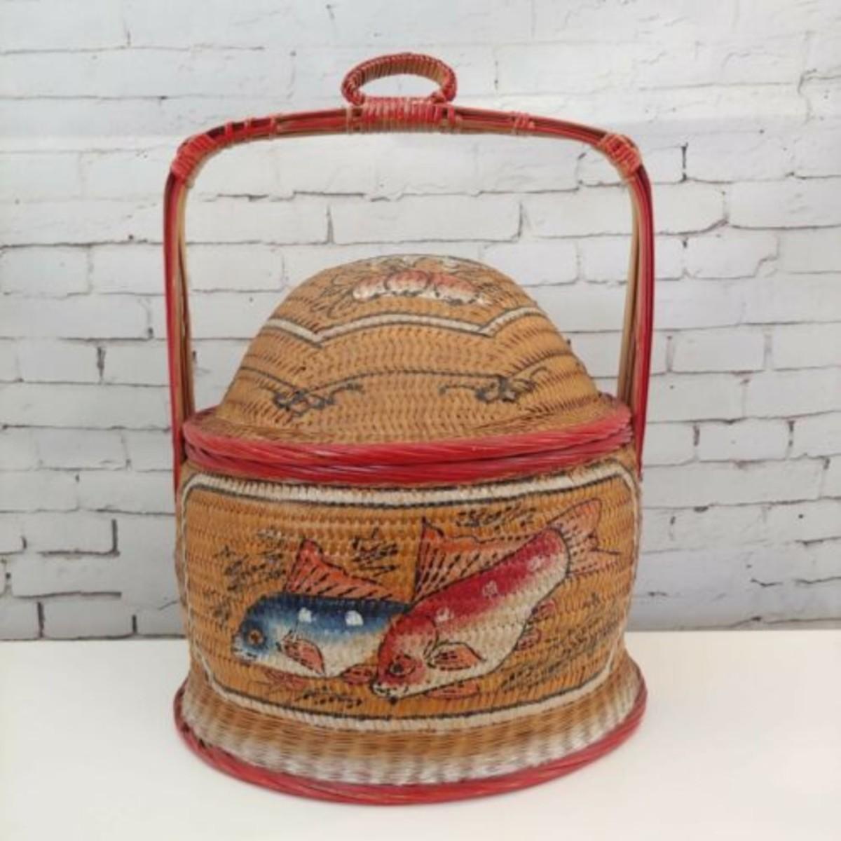 Vintage Asian Chinese Hokkien Teochew Basket Rattan Hakka Hand Painted Koi Fish