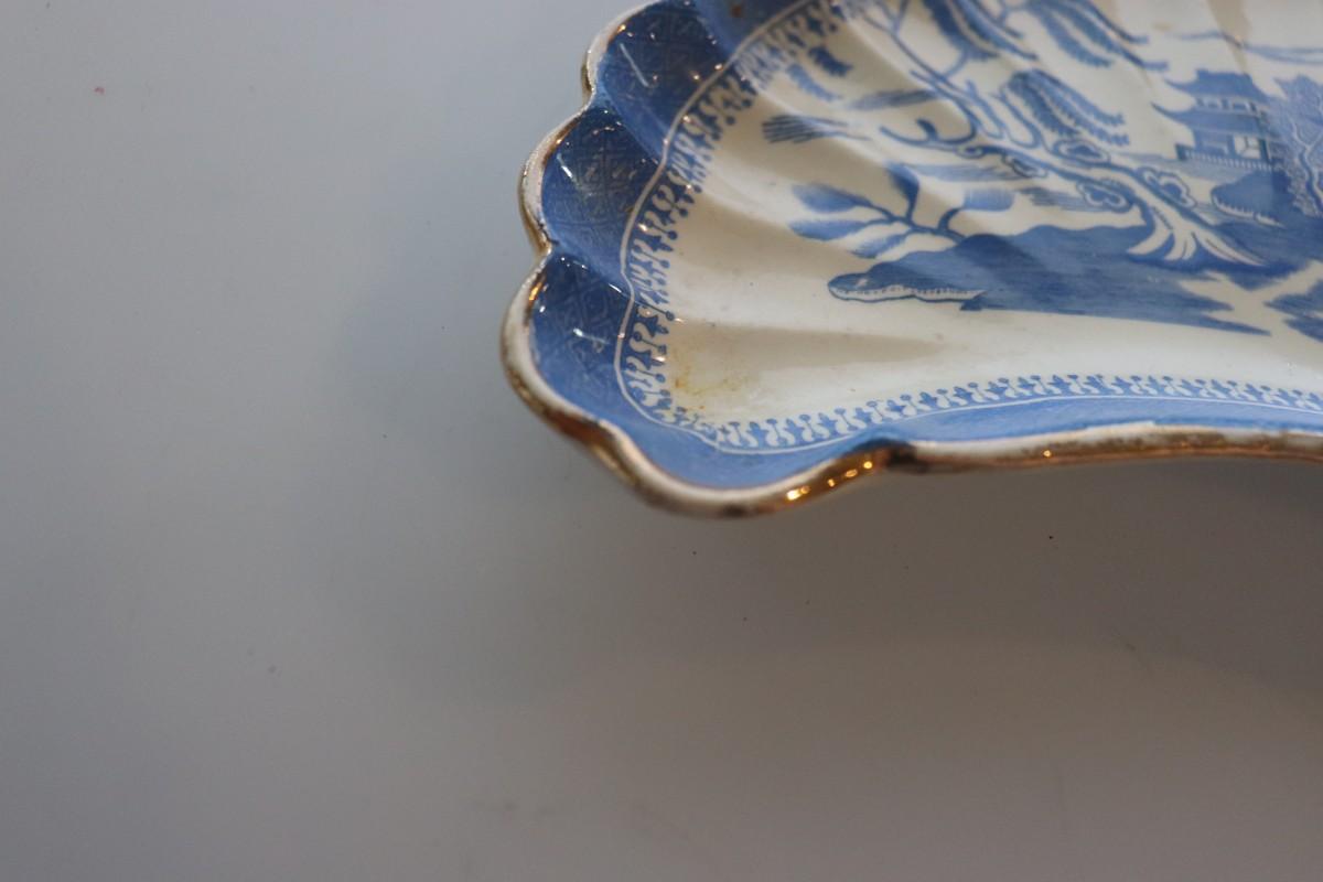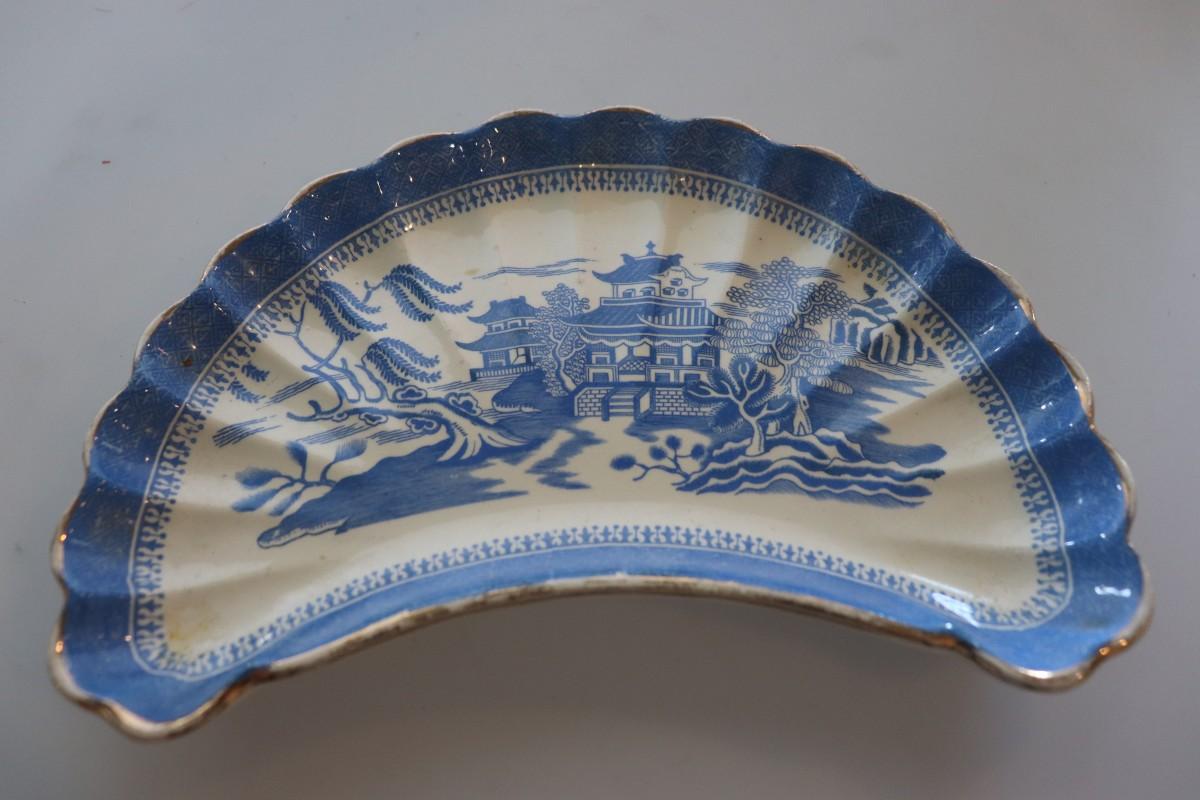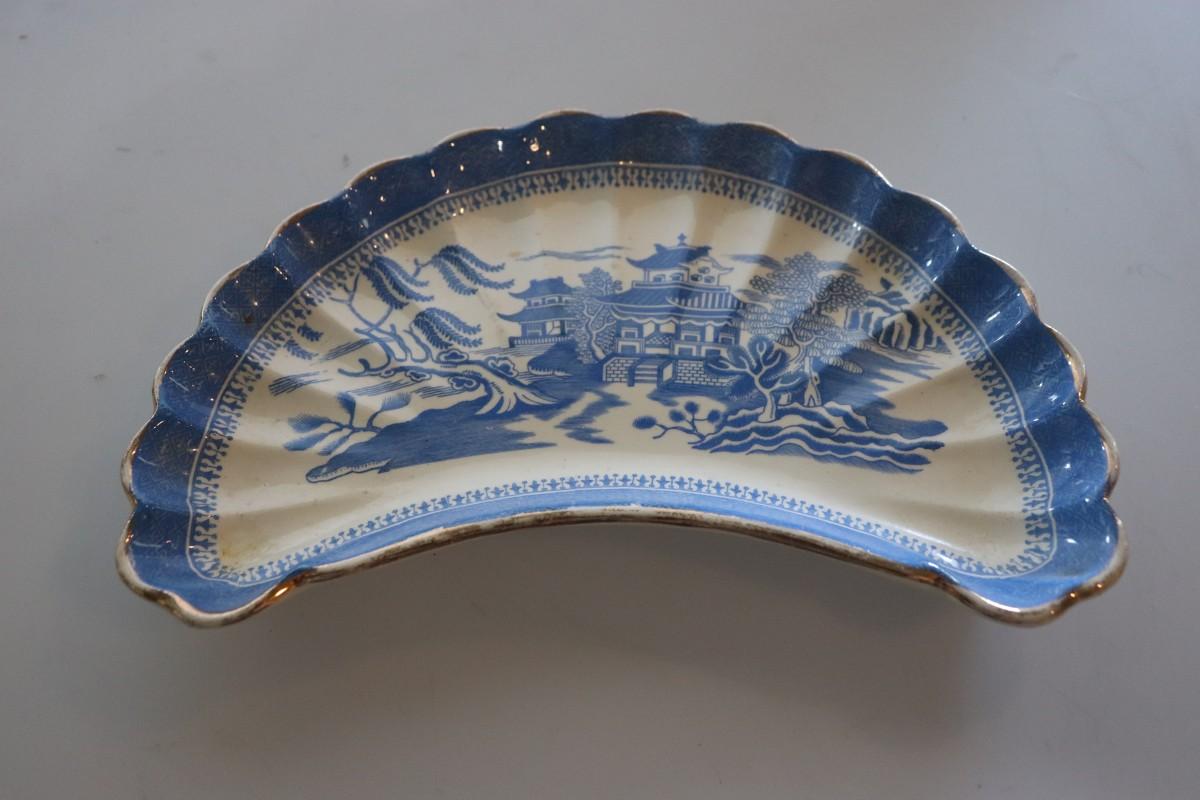 Vintage Asian Cobalt Cresent Dish Trinket Dish
