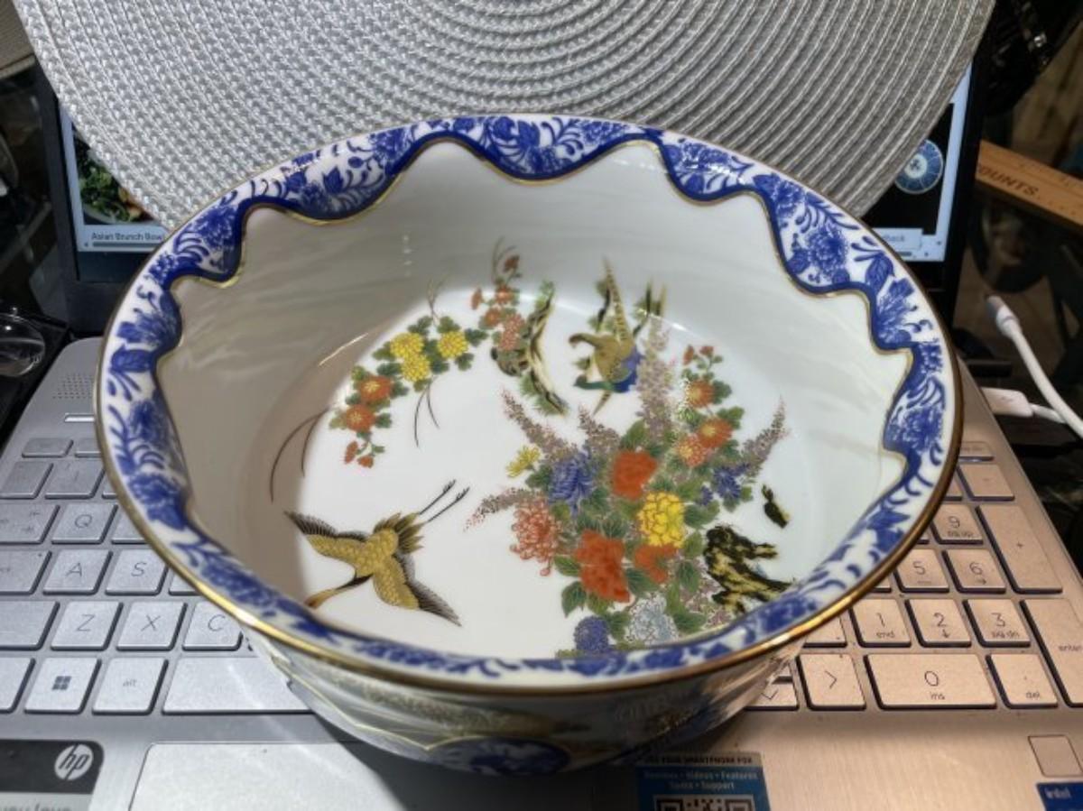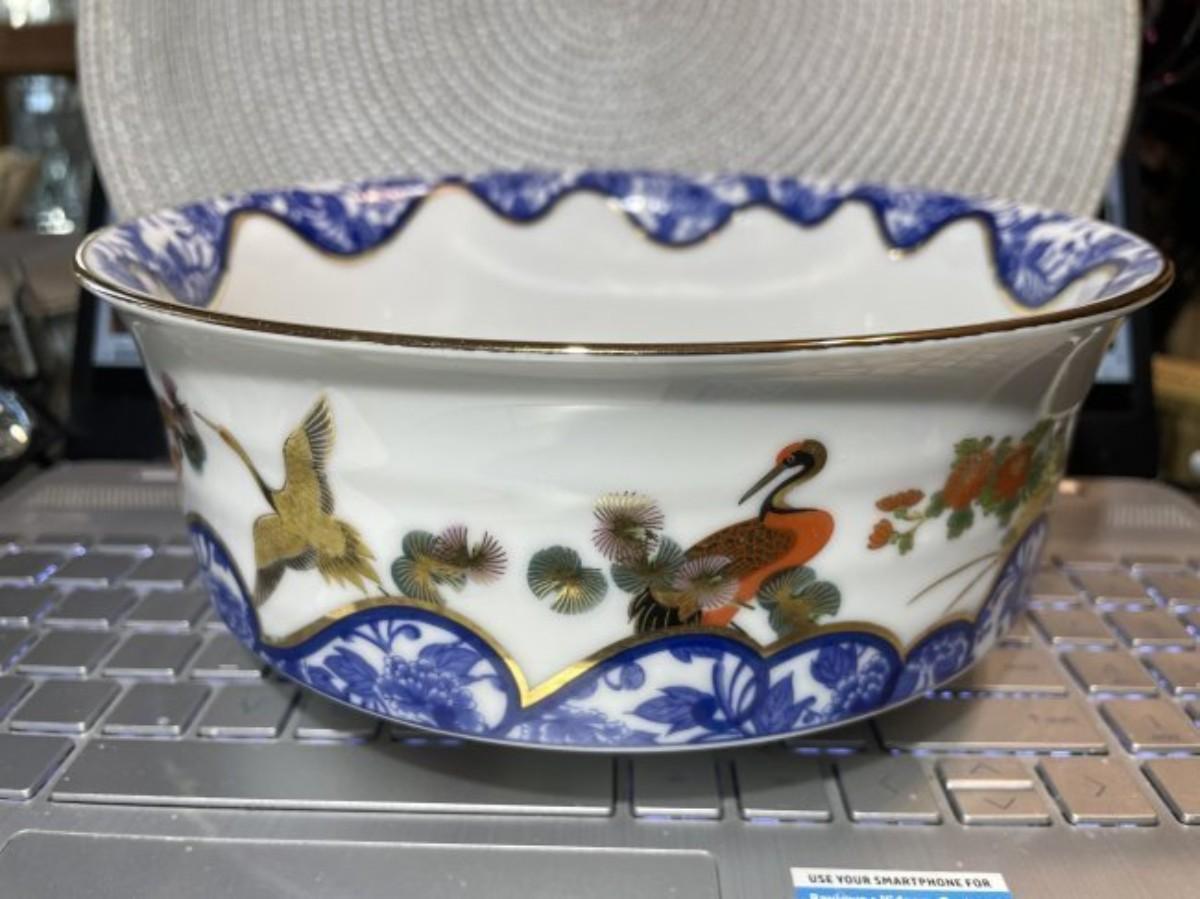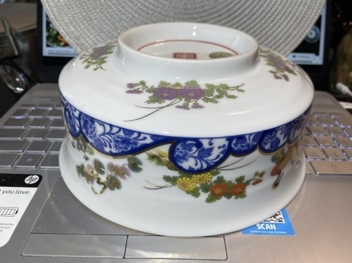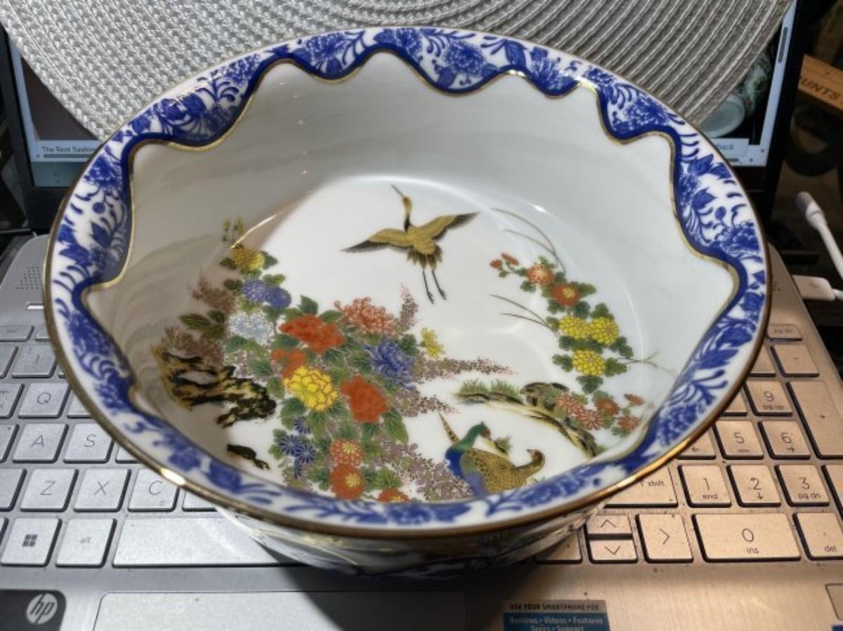 Vintage Asian Decor Porcelain Bowl Made for Macy's 8.25" Diameter & 3.5" Tall in VG Preowned Condition.